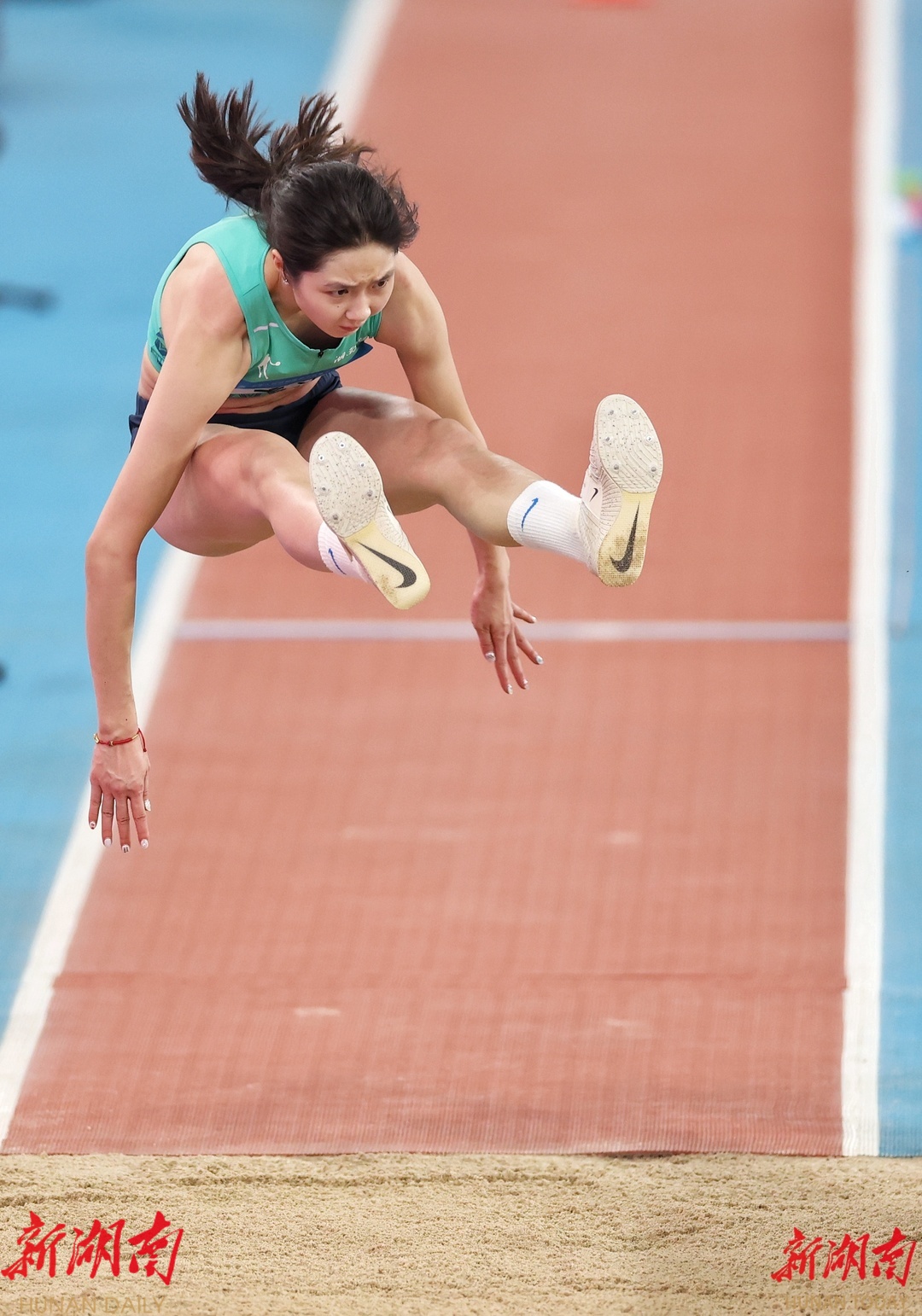 当晚的田径赛场同样上演了逆转好戏。在女子三级跳远决赛中,来自株洲的李艺在前五跳后位列第三。最后一跳,她顶住重压,跳出13米92,成功实现反超,为湖南代表团再添一枚银牌。