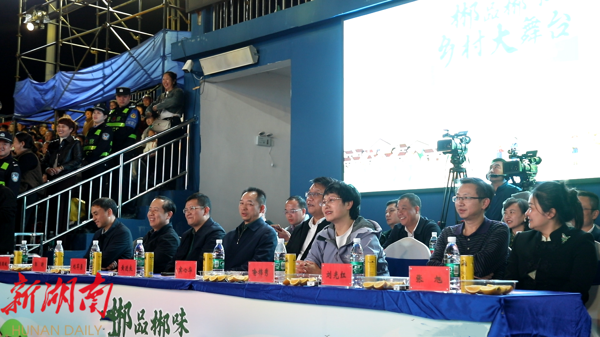 湖南日报·新湖南客户端11月17日讯(通讯员 郭伊凡 欧阳永强 ) 11月15日晚,郴品郴味乡村大舞台——郴州乡村才艺大比拼活动(永兴专场)在永兴县马田镇中心篮球场激情开启。市委副书记、市委政法委书记黄进良,县委副书记、县长宾心华出席活动。