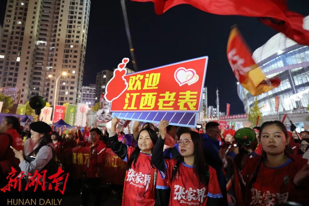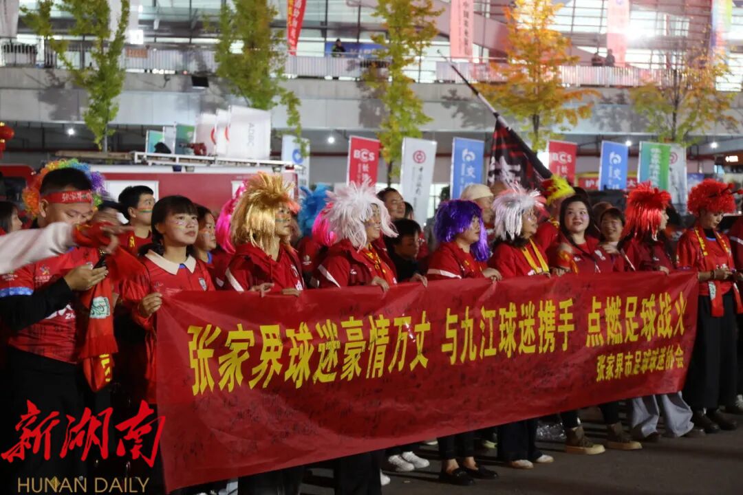 “一支穿云箭,赣G来相见!”11月15日,湘超张家界队主场迎战湘潭队的赛场上,近500名来自江西省九江市的足球爱好者组团跨越山水而来,用最炙热的呐喊书写“湘赣一家亲”。