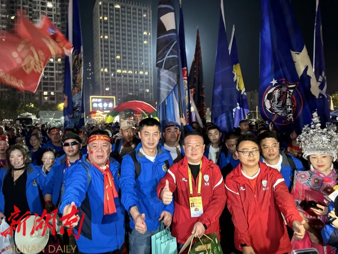 当天,张家界市本地球迷自发组织迎接队伍,以土家族独有的热情款待远道而来的“老表”。握手拥抱的瞬间、合影定格的笑脸,让赛场内外都洋溢着温情。