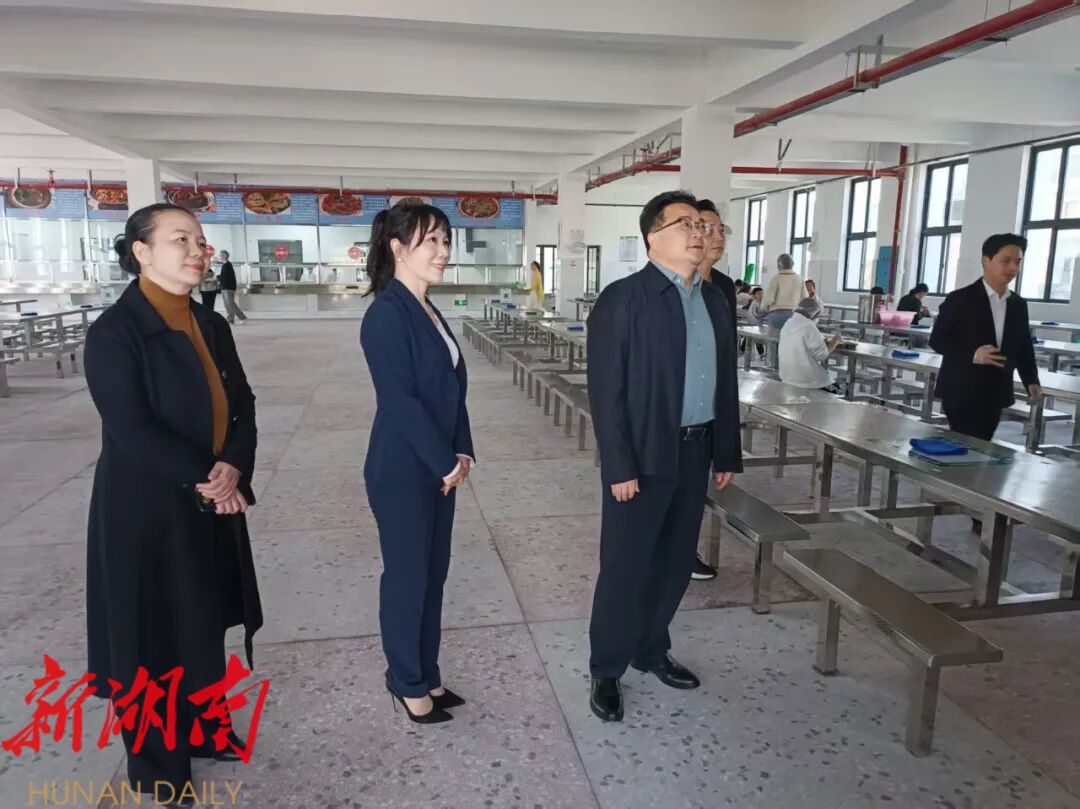 来到杨梓塘小学新建成使用的食堂内,赵立平一行深入食堂的操作间和就餐区,详细查看了食堂管理制度公示栏、信息公示栏等,细致检查了“校园餐”安全管理制度落实、从业人员健康状况、食材采购渠道、餐食加工流程及餐具消毒保洁等情况。在听取学校负责人关于食堂的日常运营管理、学生就餐安排及膳食营养搭配等工作汇报后,赵立平就进一步提升食堂管理水平、保障学生饮食安全提出了明确要求。
