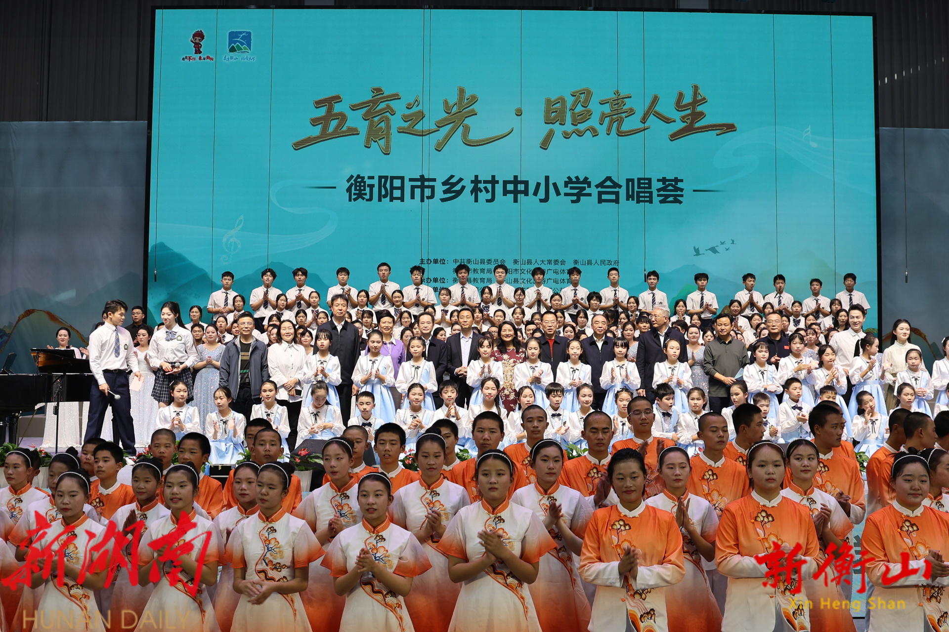 新衡山客户端11月17日讯(记者:周彭斌 刘永欢)歌声与舞步交织,梦想与激情碰撞。11月16日,“五育之光 照亮人生”衡阳市乡村中小学合唱荟在衡山二中举行,来自全市各县区的多所乡村中小学师生同台献唱。这是自2022年以来,在市人大常委会的调研走访和指导推动下,全市乡村学校以合唱促“五育”的成果展演。市人大常委会主任会议成员,市政府有关领导一同观看演出。衡阳市政协副主席、衡山县委书记戴新贤出席活动。