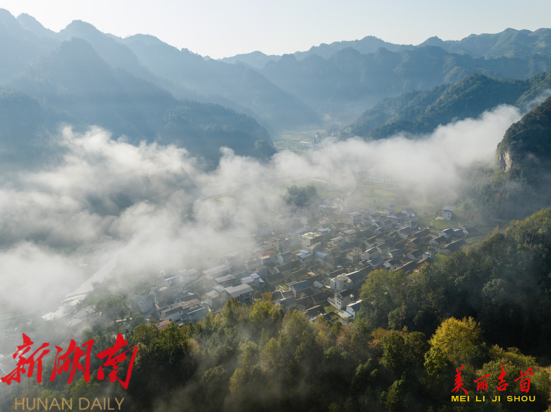 吉首:初冬晨雾乡村美