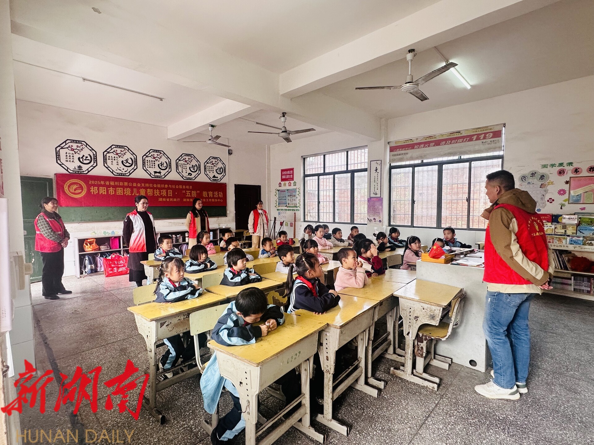湖南日报·新湖南客户端11月18日讯 (通讯员 周双莲 钱文娟) 11月17日,祁阳市美心社会工作促进会驻下马渡镇民政社工站携手志愿者们走进枫石铺小学开展“五防”教育活动,为小学生们带来了一场生动实用的安全 “必修课”。