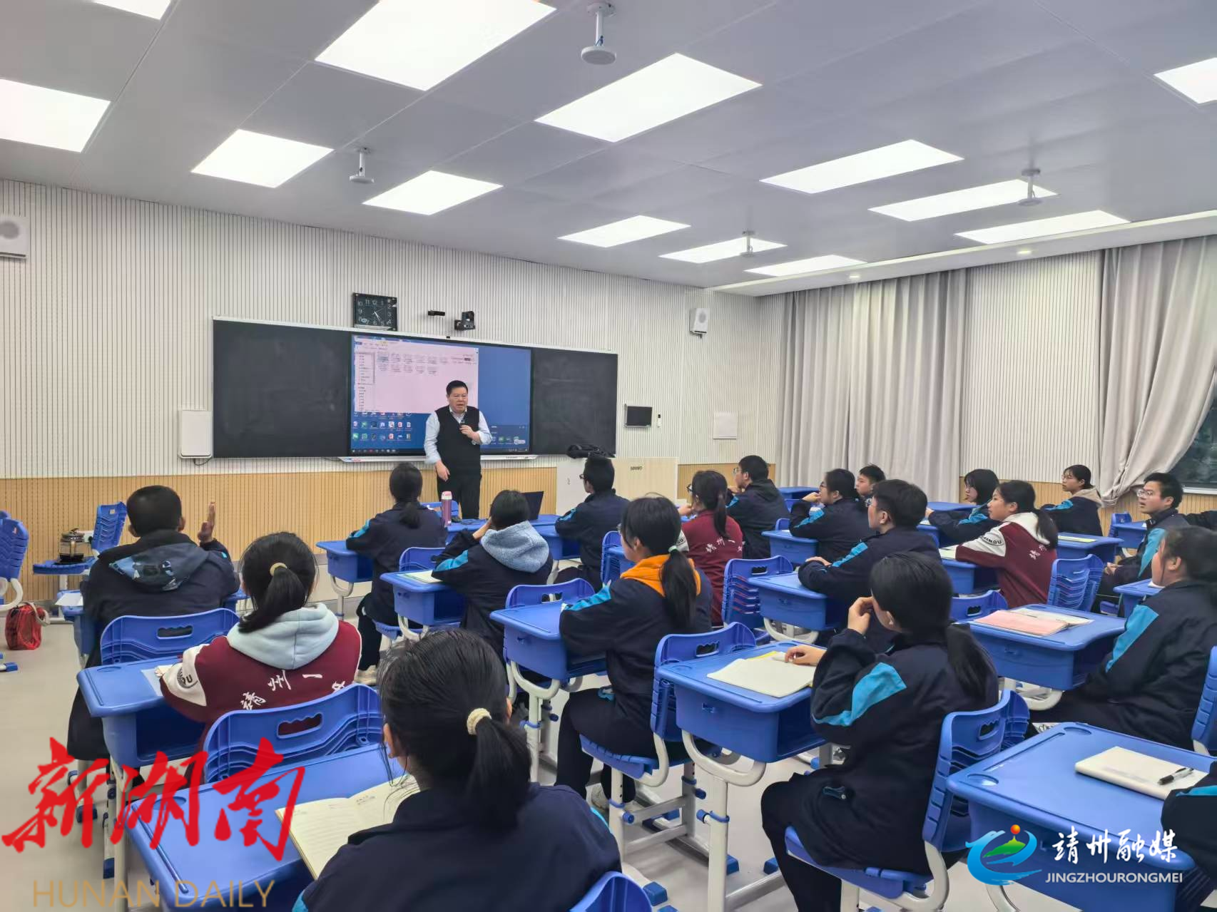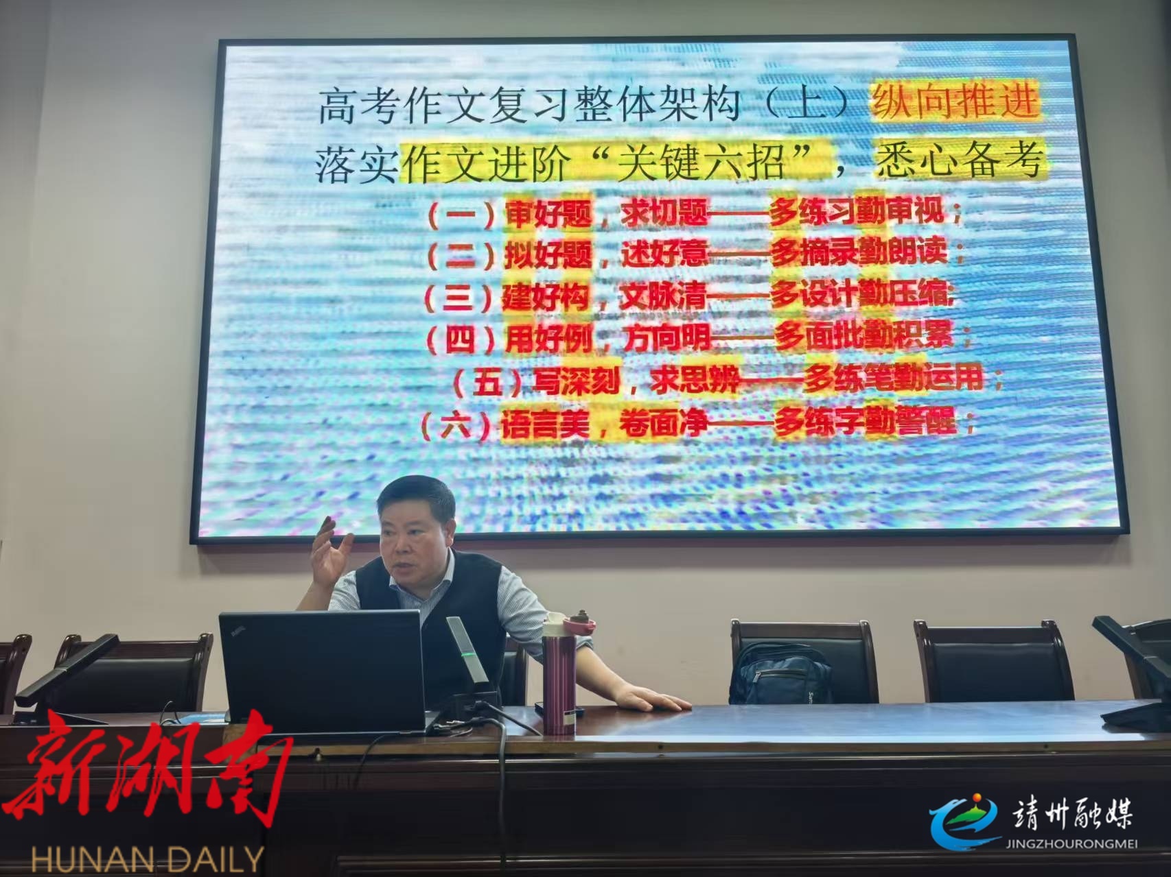 靖州融媒11月18日讯 (通讯员 吴霞)“教育不是注满水桶,而是点燃火焰!”11月17日,在苏格拉底这句教育箴言的余韵中,靖州苗族侗族自治县第一中学拔尖人才培养作文讲座开讲,主讲教师马继德的分享为紧张的备考氛围增添了温度。