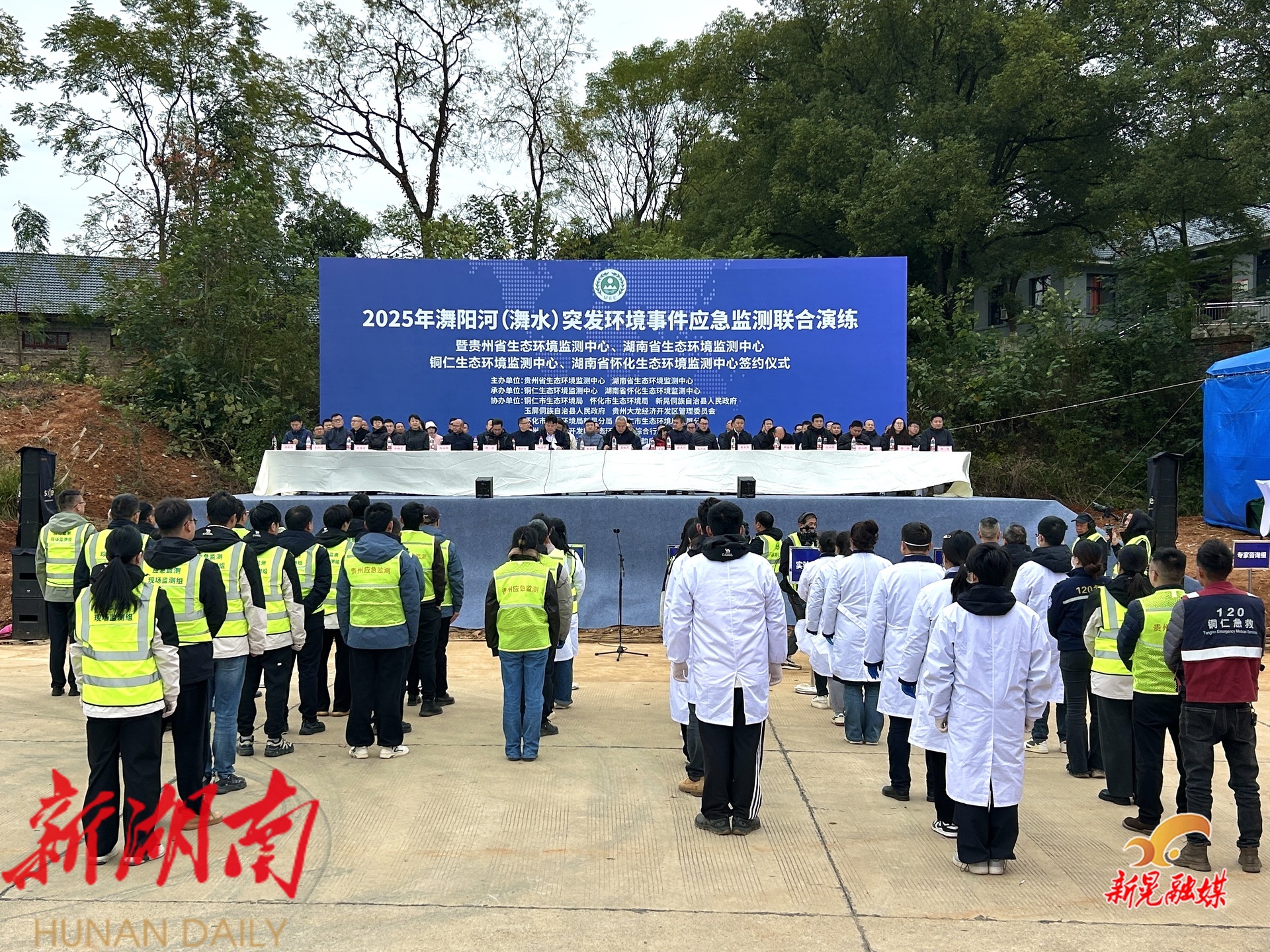 当天,贵州省与湖南省生态环境监测中心、铜仁市与怀化市生态环境监测中心分别签订突发环境事件应急监测联动及联防联控互助协议,标志着湘黔两省在相关领域合作迈向制度化新阶段,为守护㵲阳河(㵲水)生态安全筑牢制度根基,未来两省将依协议携手提升应急监测能力,共护绿水青山。
