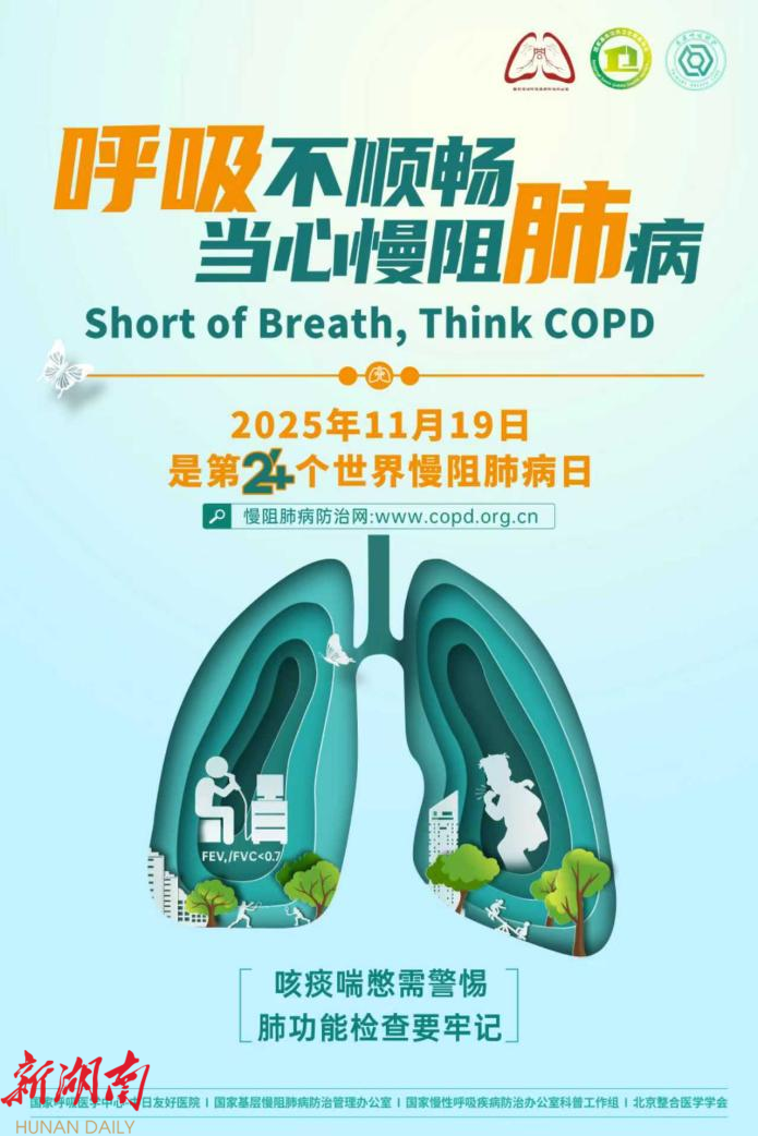 2025 年 11 月 19 日是第 24 个世界慢阻肺日,今年的主题是“呼吸不顺畅,当心慢阻肺病”。