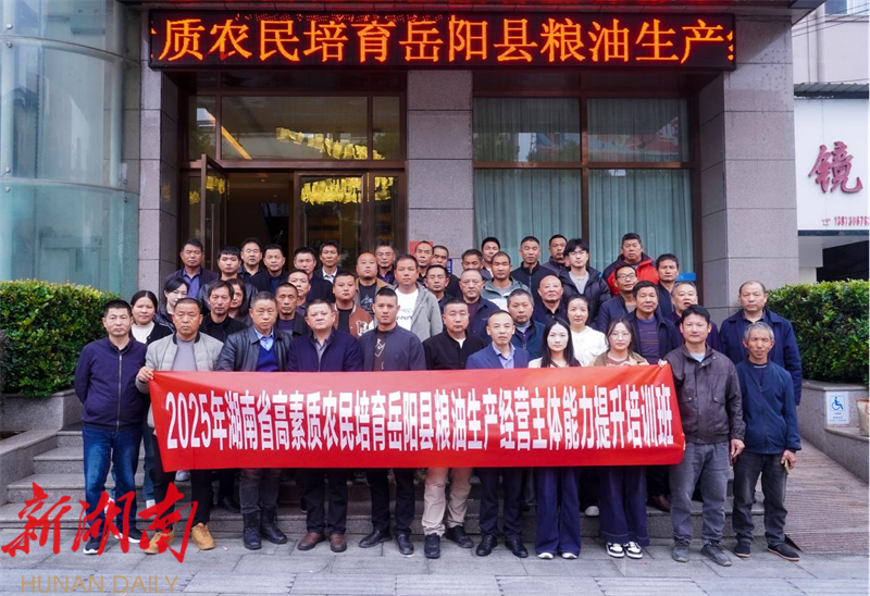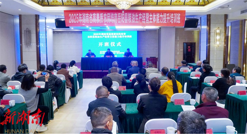 湖南日报·新湖南客户端11月18日讯(通讯员 侯玲玲) 金秋时节,农训正忙。11月11日,2025年湖南省高素质农民培育岳阳县粮油生产经营主体能力提升培训班在富雅酒店隆重开班。县农业农村局、县农业广播电视学校等相关负责人和来自全县粮油生产、加工领域的龙头企业、专业合作社、家庭农场主、种植大户等50名新型农业经营与服务主体带头人齐聚一堂,开启为期7天的集中学习之旅。