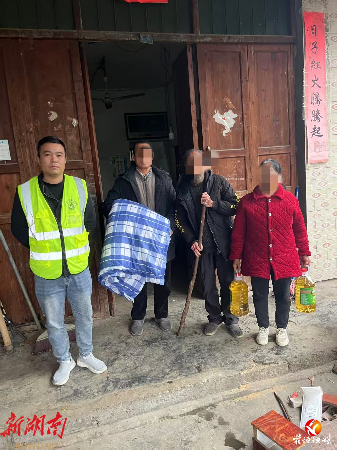 工作人员将老人送回到家中,并送上慰问物资 通讯员供图