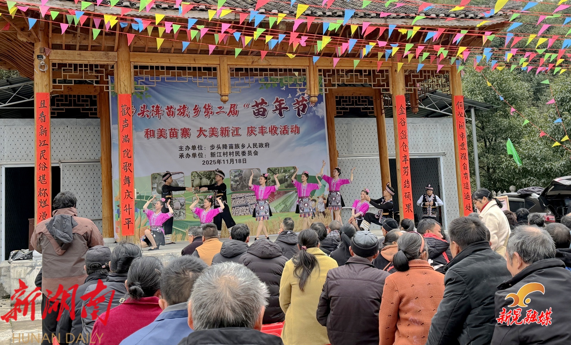 新晃融媒11月19日讯(通讯员:邱雅婷)11月18日,步头降苗族乡第二届“苗年节”民俗文体活动在新江村举行,群众欢聚一堂,共庆佳节、共享欢乐。