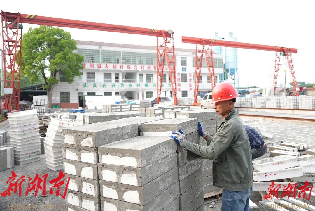 秸秆综合利用,经营主体唱主角。在益阳市农秸再生资源综合利用有限公司,秸秆经粉碎、压实、捆扎后,变成一个个“饲料包”。“我们每天可以处理150吨秸秆,加工成牛羊饲料后,销往云南、贵州、四川等地,供不应求。”公司负责人李放军说。资阳区张家塞乡柞树村经济合作社加工基地,村民制作秸秆纤维混凝土夹心预制保温砌块。在这里,秸秆被粉碎后,与砂石等建筑材料按比例混合,制成的装配式建筑填充物具有保温、抗震、造价低等优势。去年,村集体经济秸秆利用增收9.8万元,村民分红72万元。