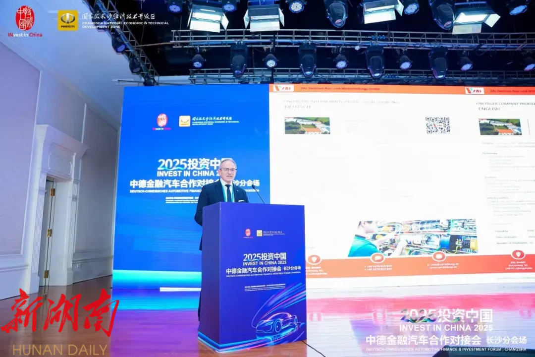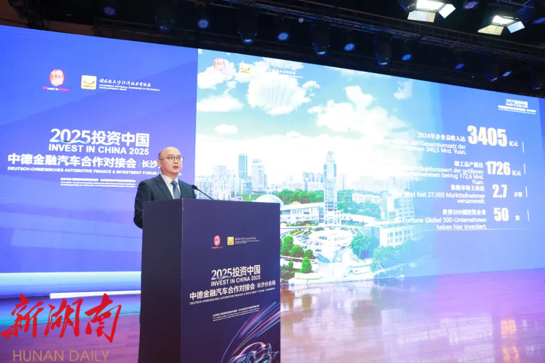 湖南日报·新湖南客户端11月17日讯(长沙经开区工作站记者 欧亚琦)初冬时节,湘江潮涌。11月15日,2025投资中国·中德金融汽车合作对接会举行,德国汽车产业代表团一行来到长沙经开区,聚焦汽车行业发展趋势,架构交流互动桥梁,深入开展务实合作。商务部投资促进事务局副局长于广生,湖南省商务厅党组成员、副厅长刘素月,长沙经开区党工委副书记、管委会主任蒋红波,长沙经开区党工委副书记赵文骄出席。