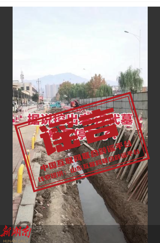 谣 言 山东泰安城区挖出汉代墓?