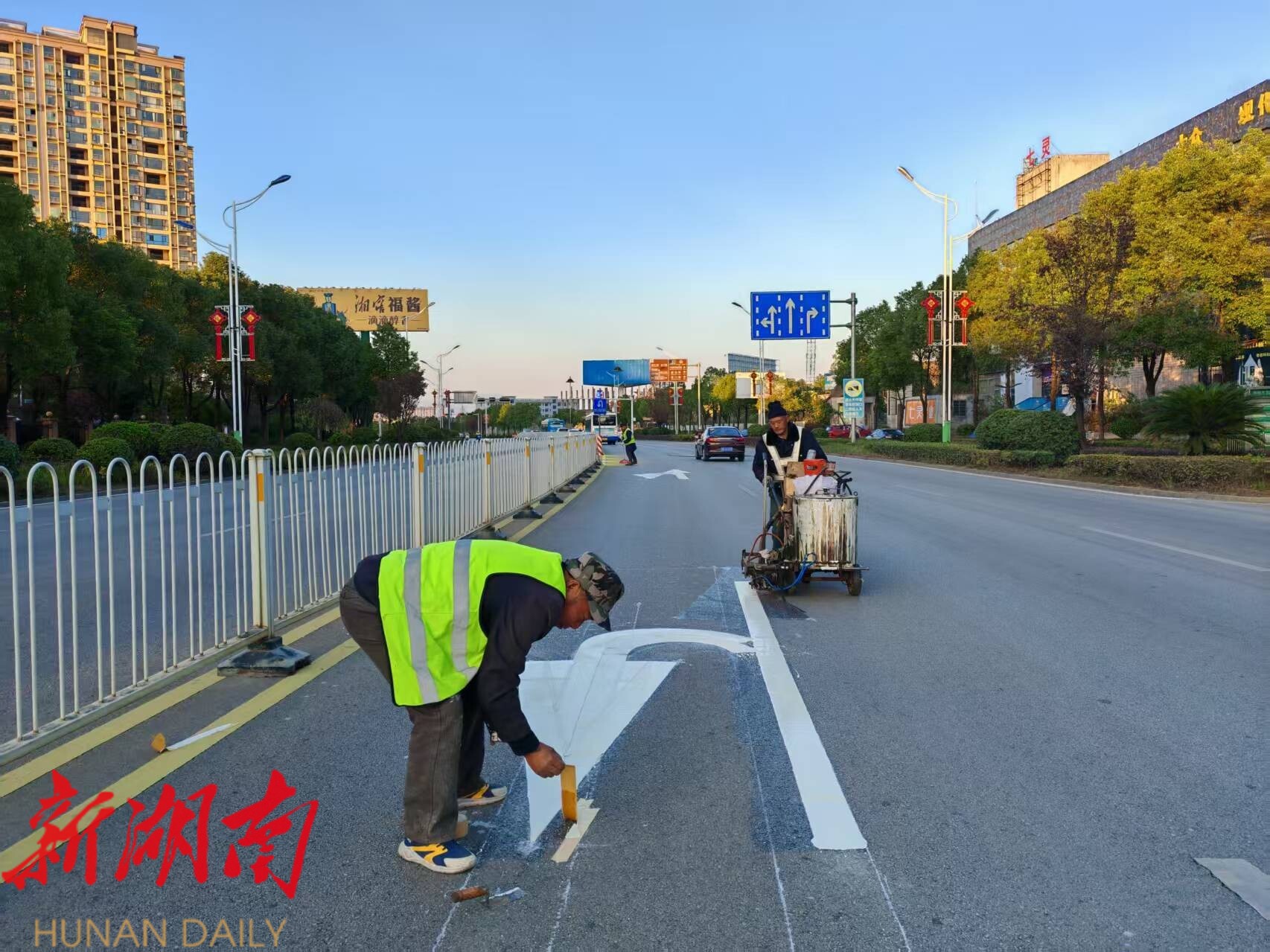 记者在施工现场看到,工人们规范摆放好安全锥筒后,使用专业热漆划线机沿预定位置施划。高温熔化的白色涂料在路面迅速凝固,形成笔直、饱满且凸起的崭新标线,旧的地面标志也被同步清理干净。新标线不仅清晰醒目,其凸起设计更增强了夜间及雨天的视觉辨识度。