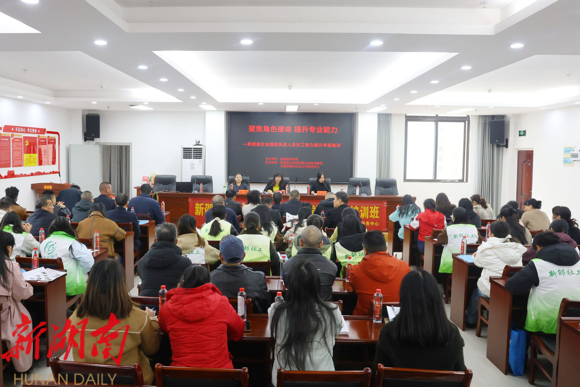 新新邵客户端11月18日讯(记者 屈凌芙蓉 唐文峰)为进一步提升全县社会组织的专业化水平和规范化运作能力,有效激发社会组织活力,有力助推全县社会治理与公共服务水平提升,11月18日,新邵县举办了以“聚焦角色使命 提升专业能力”为主题的社会组织负责人与社工能力提升专题培训班,吸引了全县各社会组织负责人及专职社工共计90余人参加。