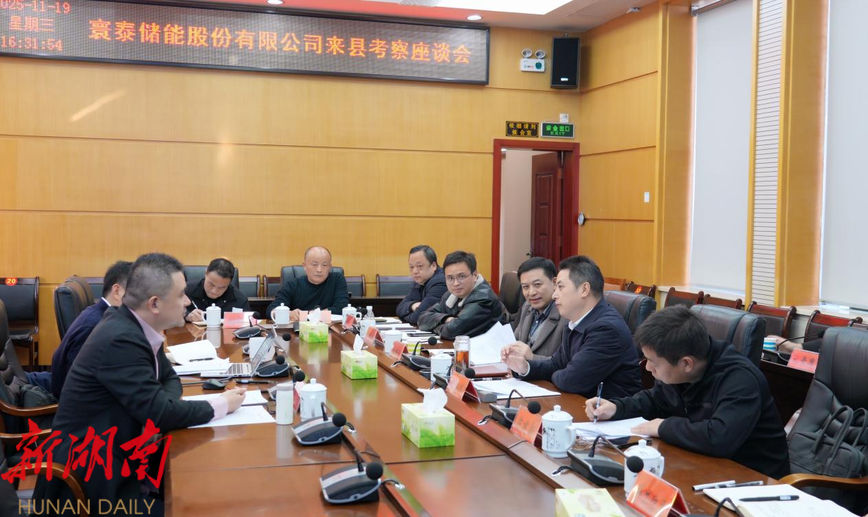 新湖南客户端11月20日讯(通讯员 郑湘)11月19日,湘西土家族苗族自治州古丈县与寰泰储能股份有限公司举行考察座谈会,围绕新能源产业发展现状与未来合作前景进行深入交流。县委书记滕朝辉主持会议并讲话,寰泰储能股份有限公司总裁张寅,县委副书记、县长陈建新出席会议。