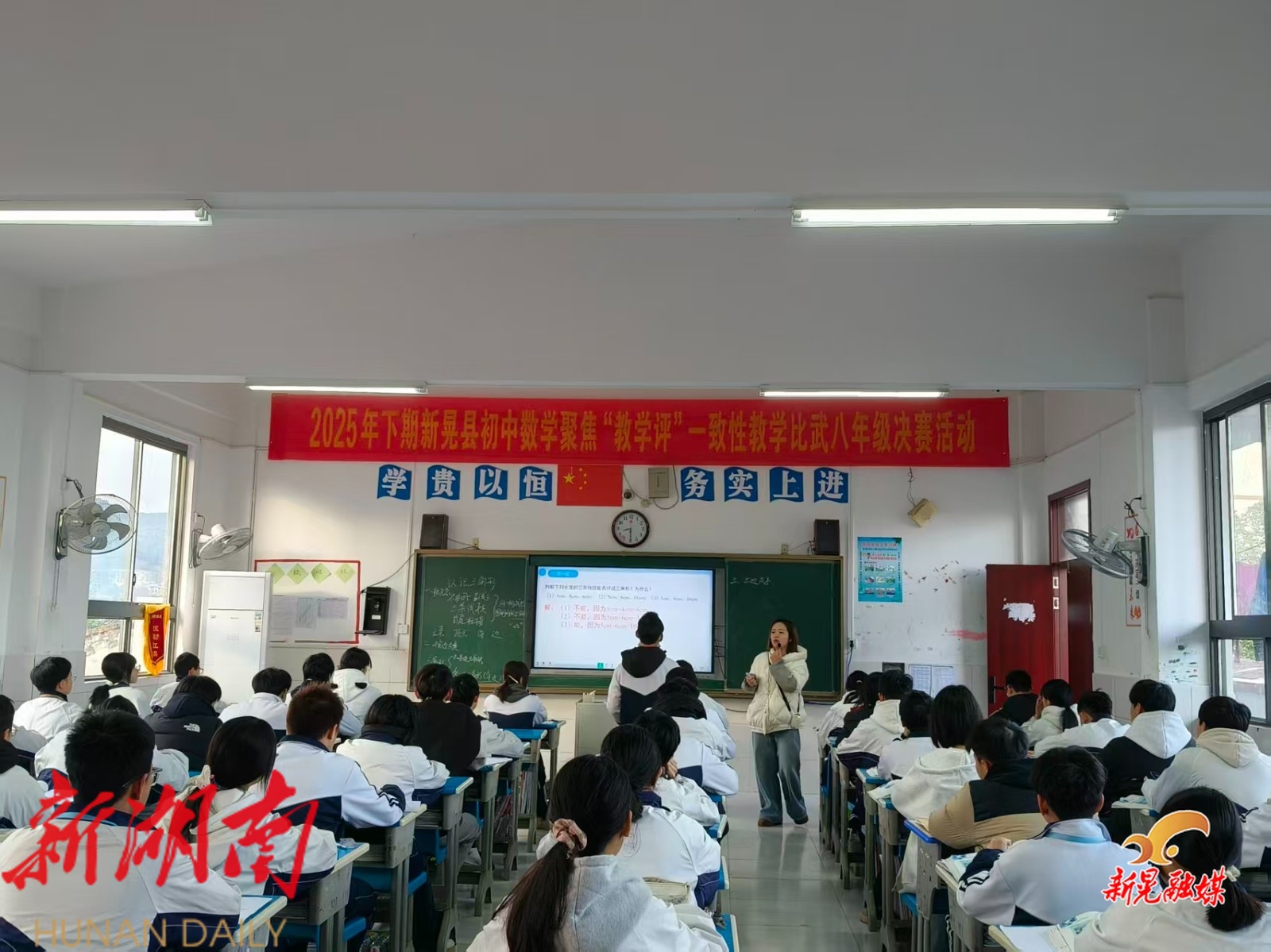 新晃融媒11月21日讯(通讯员:张琼之 杨弘睿)11月20日,新晃举办初中数学“教学评”一致性教学比武决赛,全县在职初中数学教师齐聚赛场,共赴这场教学技艺的盛宴。比赛在思源实验学校、兴隆中学、新晃芙蓉学校三个赛区同步进行,各赛场节奏紧凑、氛围热烈。