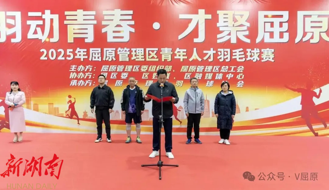 湖南日报·新湖南客户端11月20日讯(通讯员: 梁静) 为丰富青年人才精神文化生活,营造积极健康的人才发展环境,11月18日,2025年屈原管理区青年人才羽毛球赛激情开赛!本次赛事以“羽动青春·才聚屈原”为主题,吸引全区近百名羽毛球爱好者踊跃参赛。区党委副书记潘岳清宣布比赛开幕,区领导徐胜、胡志刚、代颖慧、李为共同参与表演赛。