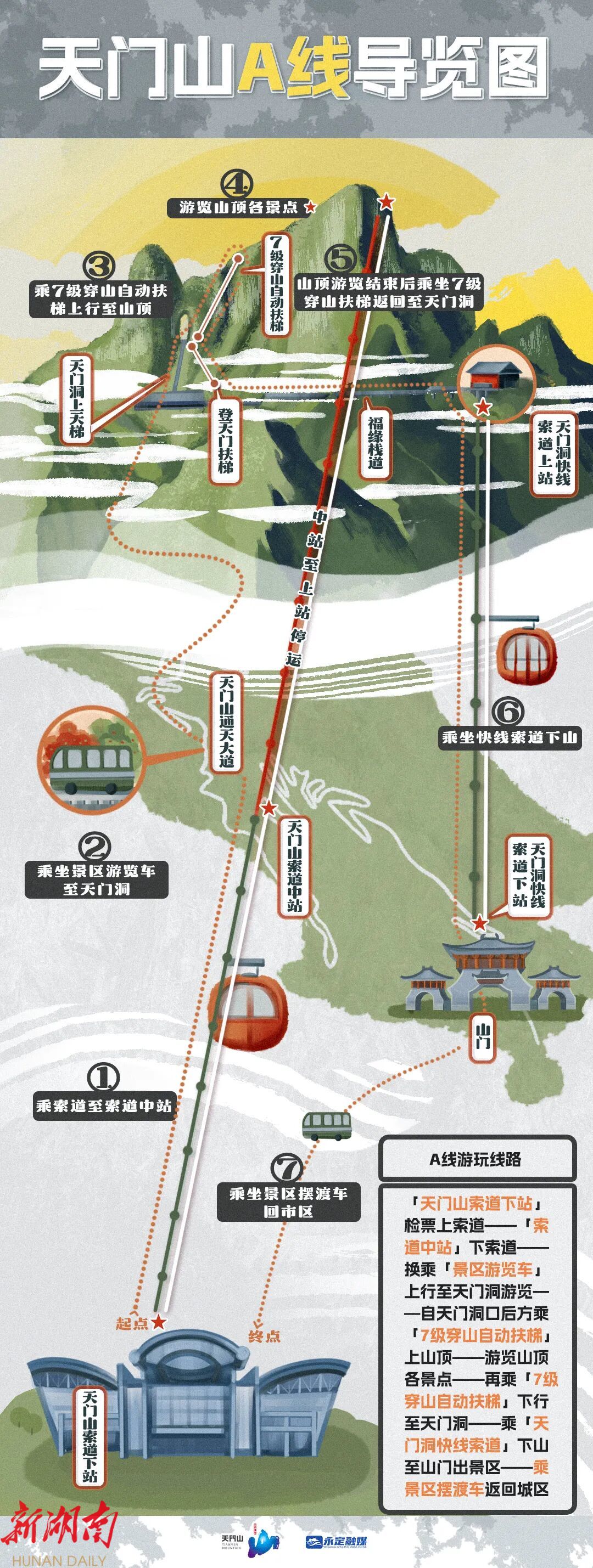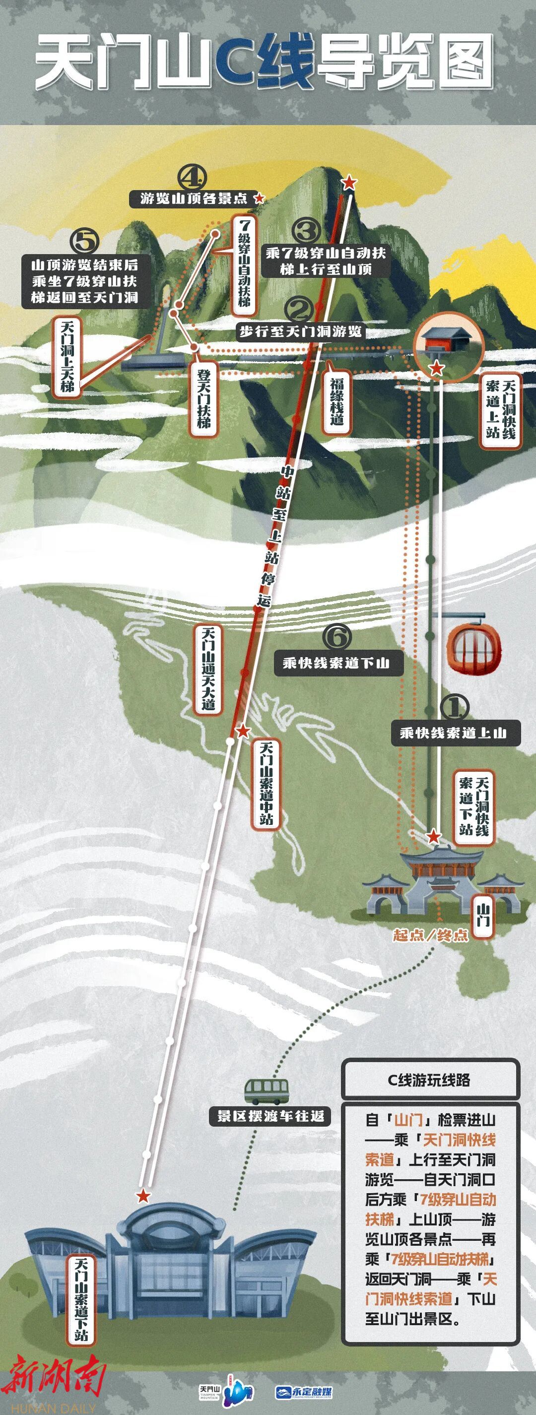 张家界天门山景区 最新最详细的 交通导览图 来了 天门山索道因整体升级改造施工 景区游玩交通线路有所调整 现将 A/B/C三条交通游览线路攻略 献上 请各位友友们根据需求 选择你所需要的路线图游玩吧!