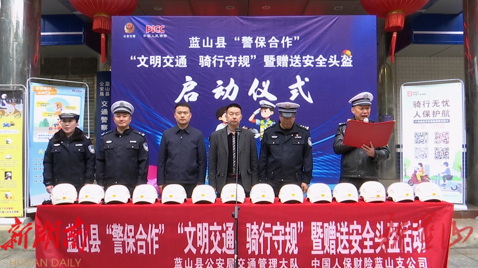 蓝山县举行“警保合作”“文明交通骑行守规”暨赠送安全头盔启动仪式
