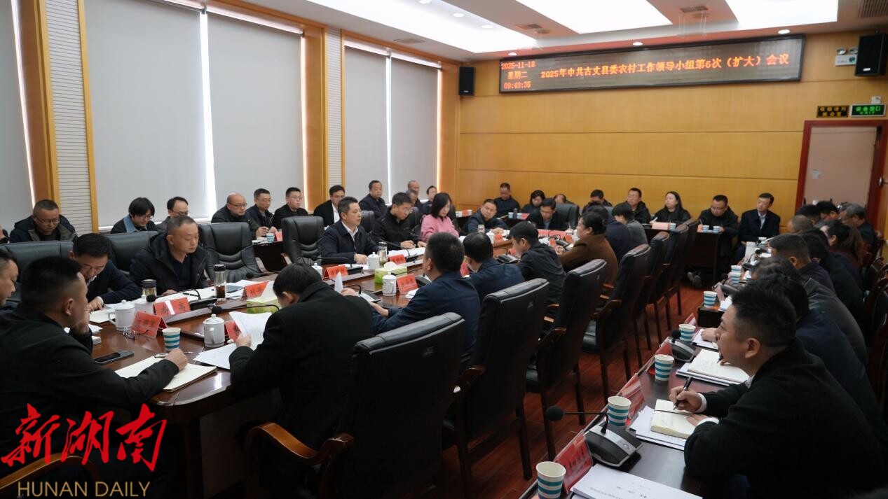 新湖南客户端11月20日讯(通讯员 郑湘)11月18日,古丈县委农村工作领导小组2025年第6次(扩大)会议召开。县委书记滕朝辉出席会议并讲话,强调要深入学习贯彻习近平总书记关于“三农”工作的重要论述,坚决扛起政治责任,加压奋进、攻坚冲刺,查漏补缺、巩固提升,高质量完成过渡期各项任务,有力有效推进乡村全面振兴。县委副书记、县长陈建新主持会议,县委副书记陈明灯出席。