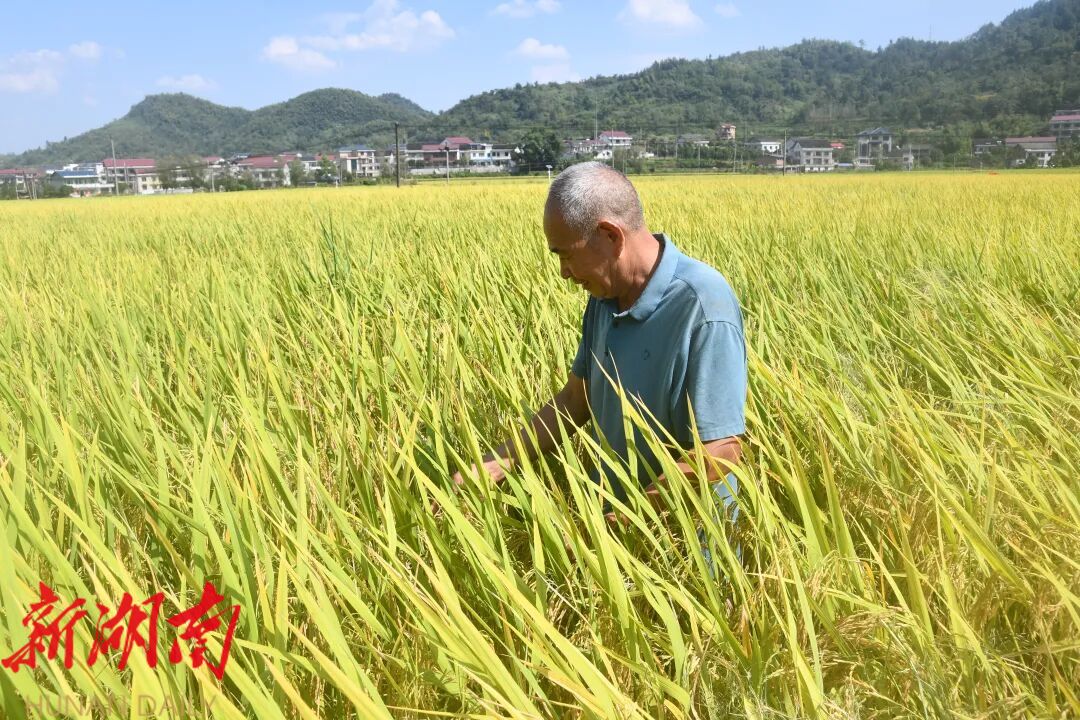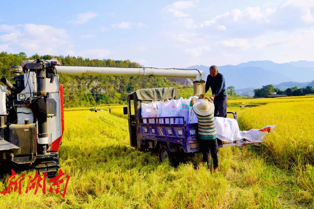 新新邵客户端11月21日讯(记者 杨能广 孙咏梅 张海兵)金秋时节,新邵县坪上镇的稻田里翻涌着金色波浪,空气中弥漫着稻谷的清香。60岁的艾利铭正守在收割机的出料口,将倾泻而出的金黄稻谷熟练地装袋、码放,古铜色的脸庞在阳光下泛起欣慰的笑容。这位被乡亲们亲切称为“老艾”的种粮能手,始终保持着对土地最深的眷恋。爱农业、懂技术、善经营的他,用后半生的坚守诠释着“多种粮、种好粮”的朴素信念,为端牢“中国饭碗”贡献着自己的力量。