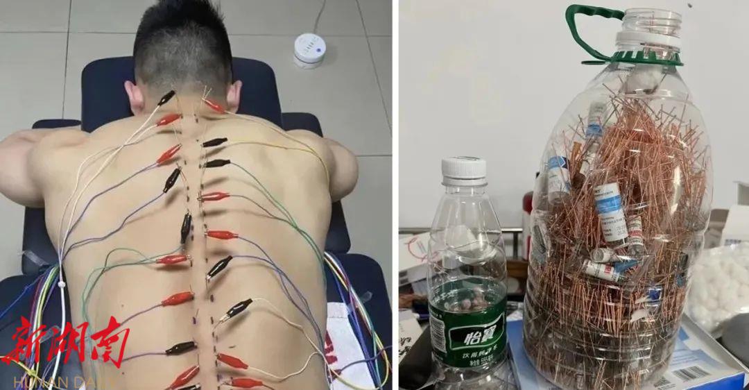 他的背部满是针痕