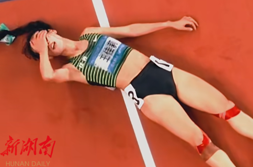 王佳莉拼尽最后力气完成了比赛