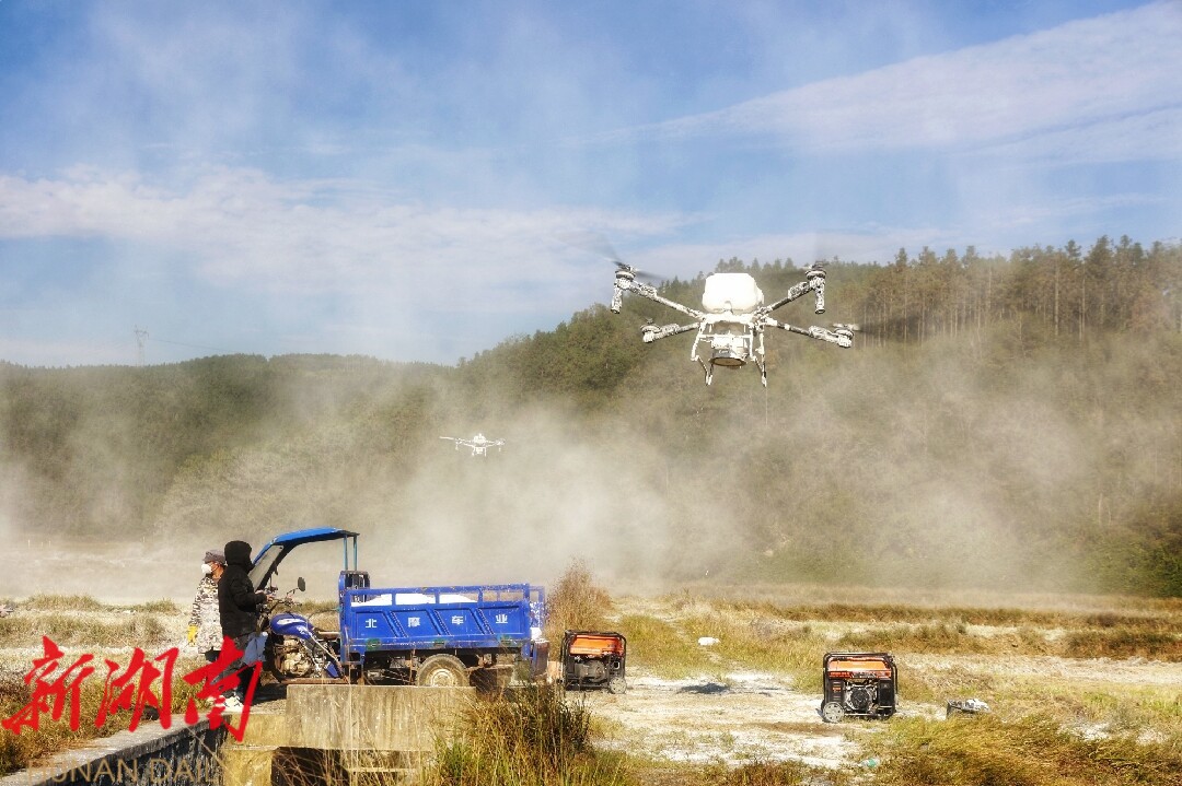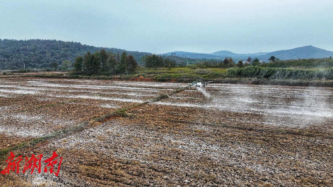 桂阳县添诚合作社理事长付跃斌说:“因为长期农田他们这种耕作的话,土壤容易酸化、氧化、结块,用无人机来撒些石灰的话,可以有效的减少那种酸性,而且用无人机比人工去撒石灰的效率更快更高,可以提前半个月到一个月之间。 ”