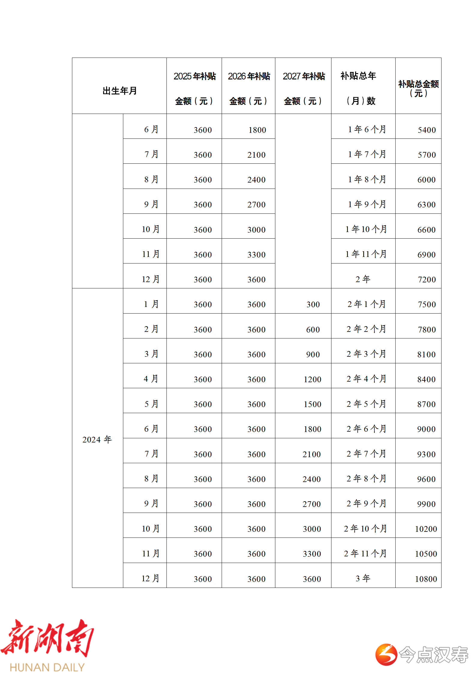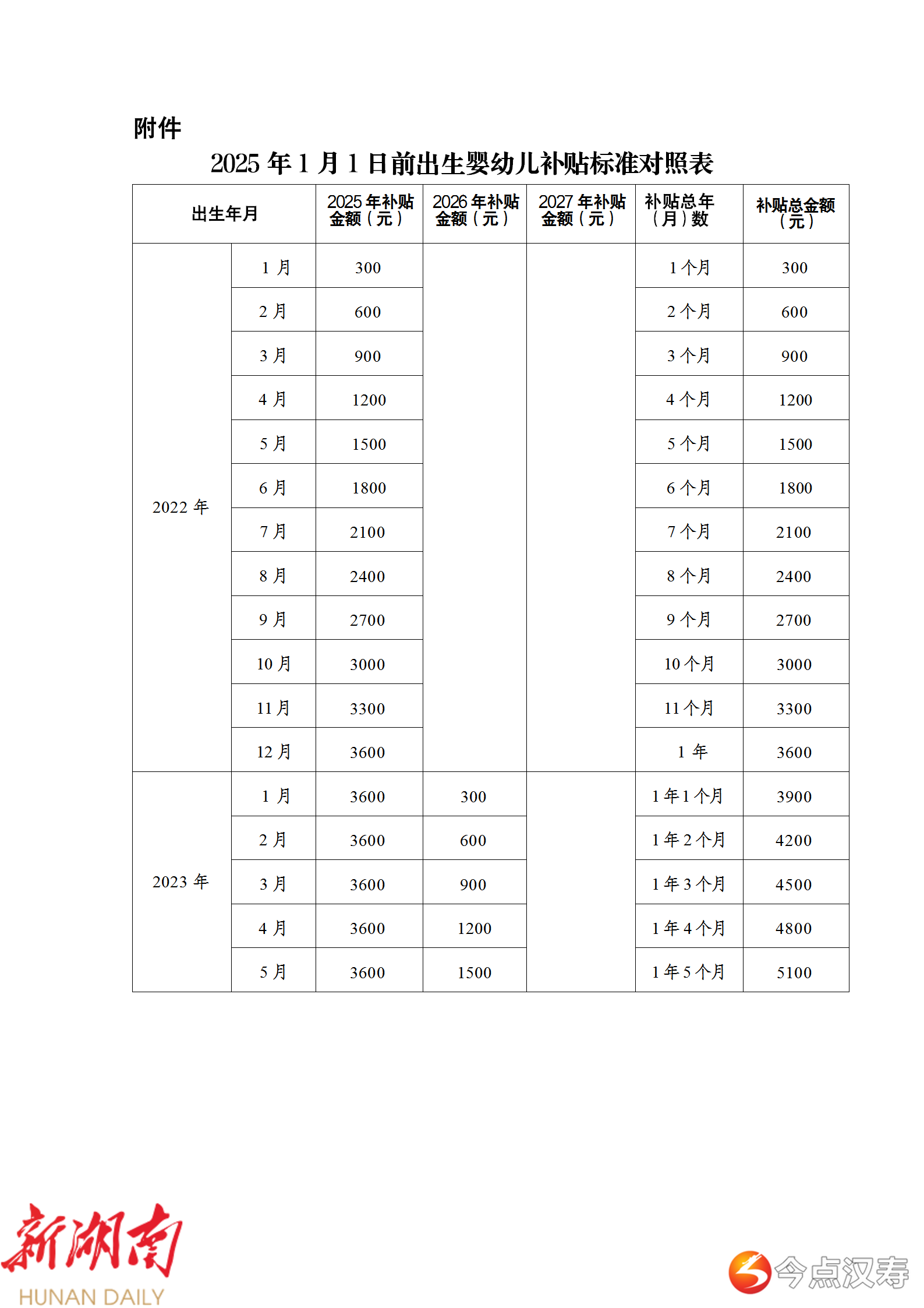 具体算法见附表(《2025年1月1日前出生婴幼儿补贴标准对照表》)。