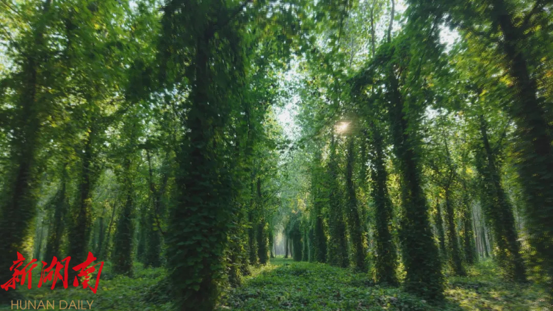 这处被网友称为现实版“绿野仙踪”的网红打卡点,坐落于汉寿县沧港镇风菱村。每年秋冬,野生栝楼、乌蔹莓等藤蔓植物或匍匐蔓延,或沿笔直杨树攀援而上,层层叠叠,绿意盎然。这片自然馈赠的绿色梦境占地超百亩,现已新建旅游道路,增设停车场与导览标识,实行人车分流。未来,这里将发展成为以“梦幻汉寿”为主题,集生态观光、萌宠互动与休闲体验于一体的综合性旅游景点。
