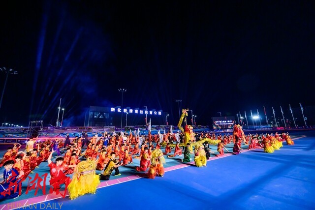开幕式以“激情轮滑、神韵新化”为主题,巧妙融合新化生态风光、武术、山歌与现代轮滑艺术,充分彰显了文化与体育的融合共生。梅山武术刚劲有力,展现了蚩尤先民的勇武风骨;花样轮滑演绎红色岁月,传承着永不言弃的奋进精神;自由式与速度轮滑的跨界碰撞,彰显了国际竞技的活力与激情;新化民歌悠扬婉转,唱出了千年古城的厚重底蕴。