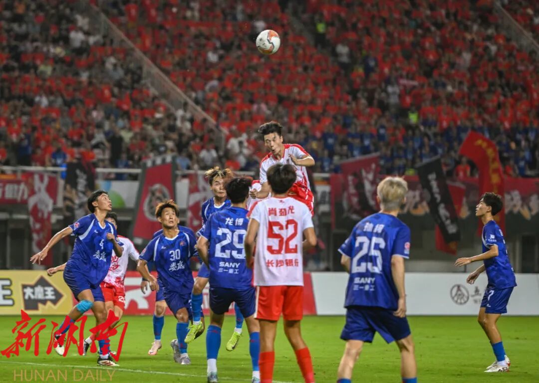 9月7日晚,2025年湖南省足球联赛首战,最终长沙队主场以2比0战胜娄底队。 湖南日报全媒体记者 郭立亮 摄