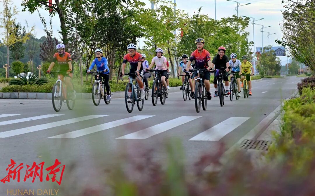 9月16日,骑行爱好者在洞口县雪峰街道城东大道骑行。滕治中 摄