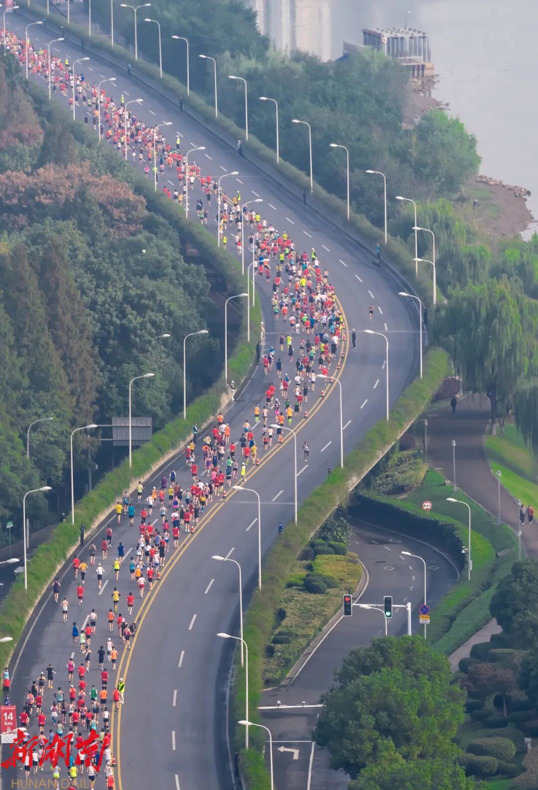 2023年10月29日,参赛选手奔跑在潇湘大道。当天,长沙马拉松赛开跑。湖南日报全媒体记者 辜鹏博 田超 摄