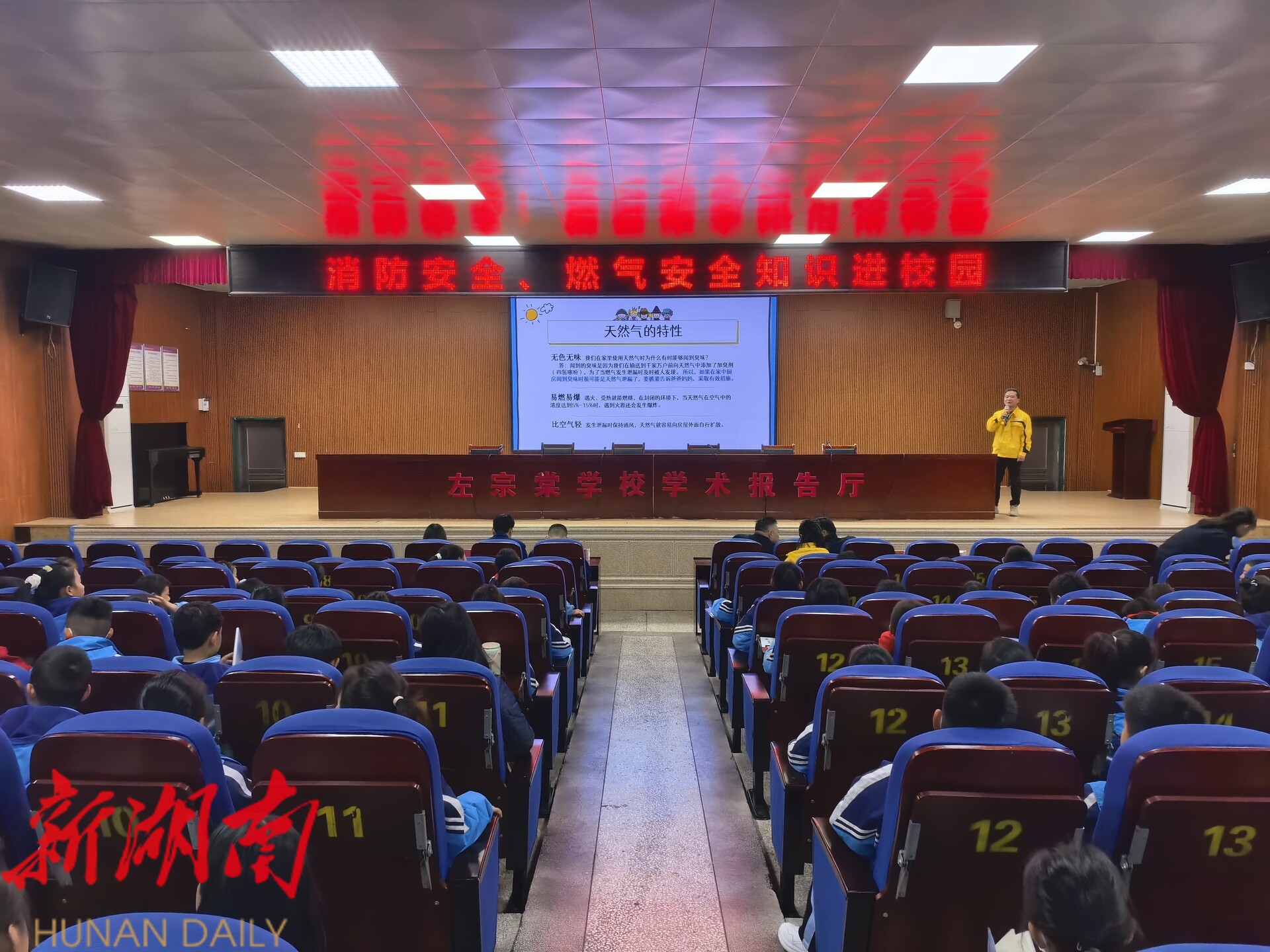 湖南日报·新湖南客户端11月23日讯(通讯员 蒋龙 杨文志)11月21日, 由湘阴县城管局、县教育局、县消防救援大队联合主办,湘阴长燃中阳燃气有限责任公司承办的“ 消防安全、燃气安全知识进校园”活动走进左宗棠学校。