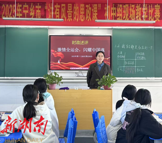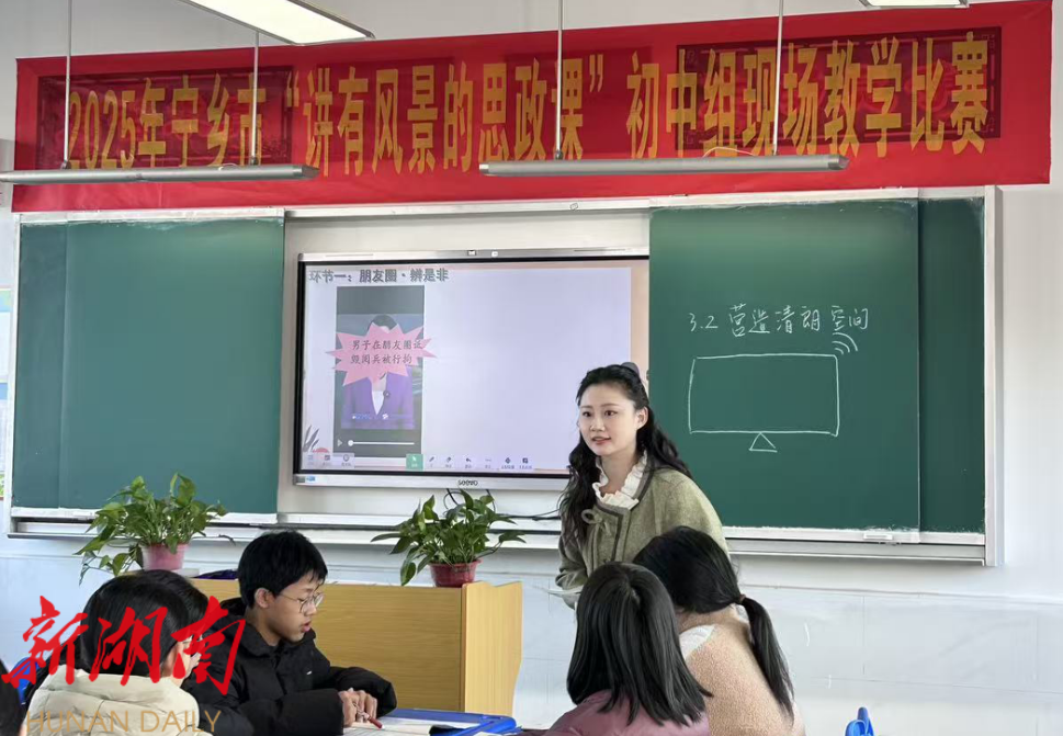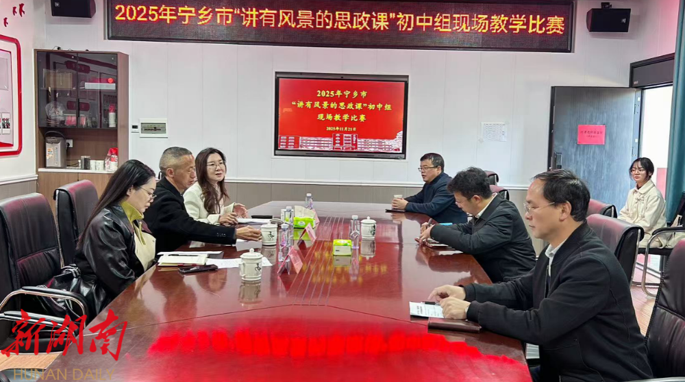 湖南日报·新湖南客户端11月23日讯(通讯员 崔宇香 文晓筱)为深化思政课教学改革,充分发掘思政课程的育人功能,11月21日,由宁乡市教育研究中心与普教科联合主办,双凫铺中学承办,宁乡市崔宇香初中道德与法治名师工作室协办的2025年宁乡市“讲有风景的思政课”初中组现场教学比赛在双凫铺中学顺利举行。
