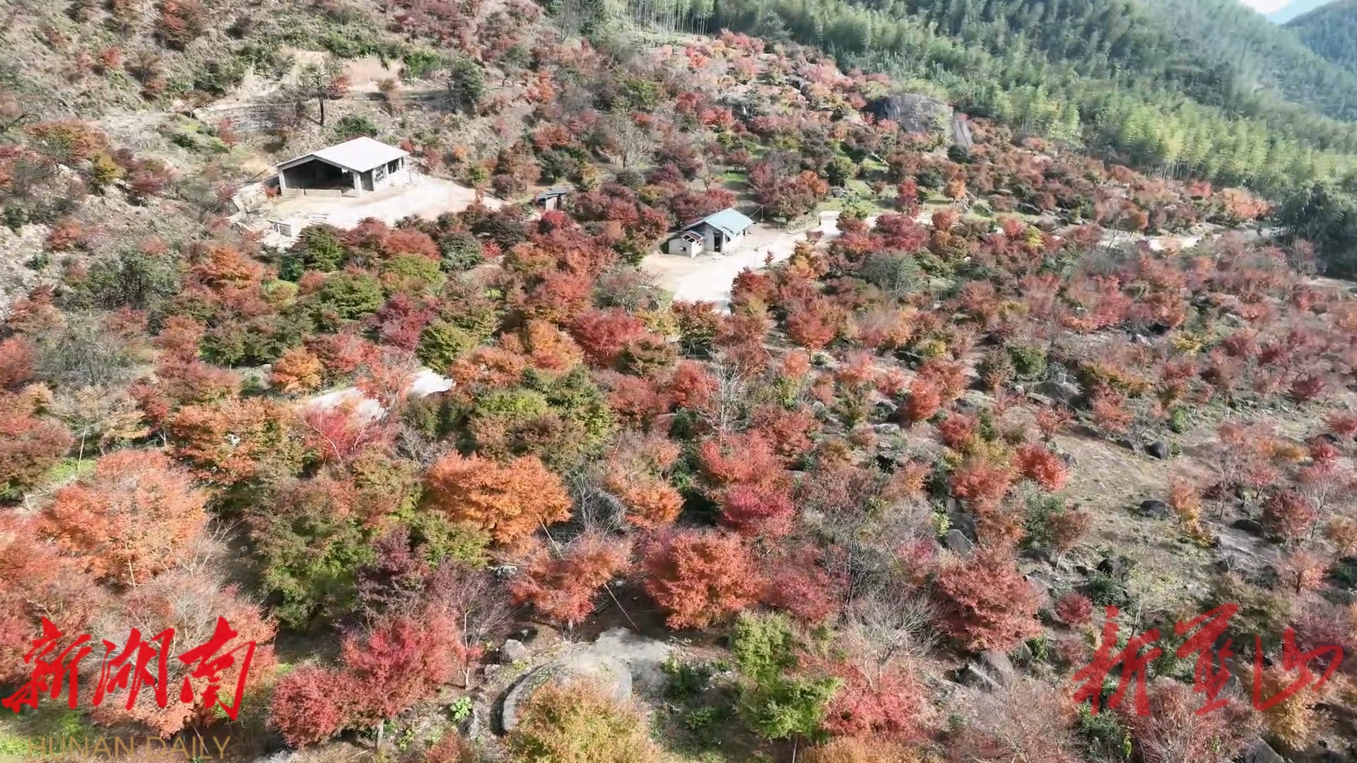 (通讯员 成醒 彭耀民 易紫轩) 这两天,位于蓝山县湘江源瑶族乡坪源村蓝山谷景区的红枫渐次转红,宛如为初冬的山岭披上了一袭斑斓“霓裳”。尽管景区暂未开放,但美景已然“上线”。下面,让我们通过镜头一睹为快。