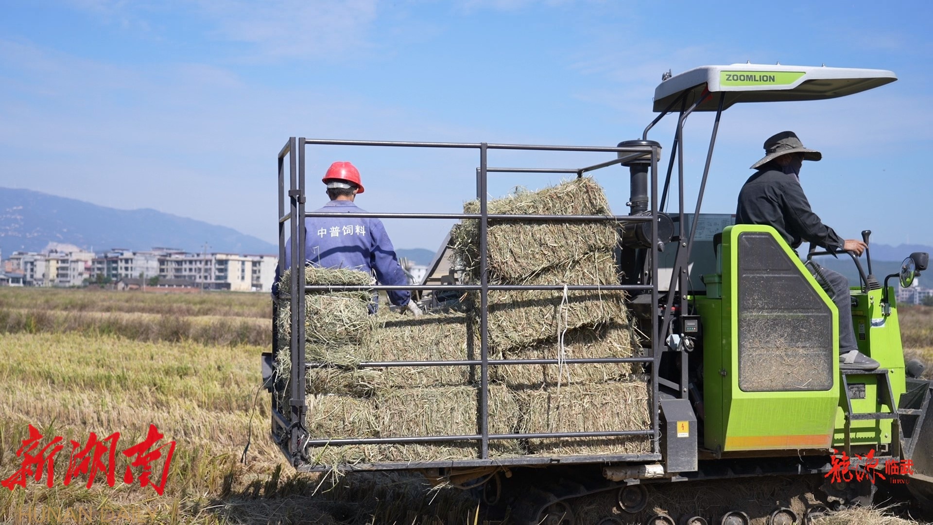 湖南冠众农业科技有限公司经理石峰介绍,单日最高作业量可达90亩,产出约30吨秸秆。较干燥的秸秆将作为饲料送往牛场,而较湿润的秸秆则经过初步加工,可制成可降解环保材料,用于生产纸杯、蛋托等产品。目前,秸秆牛饲料的市场价格约为每吨800元。