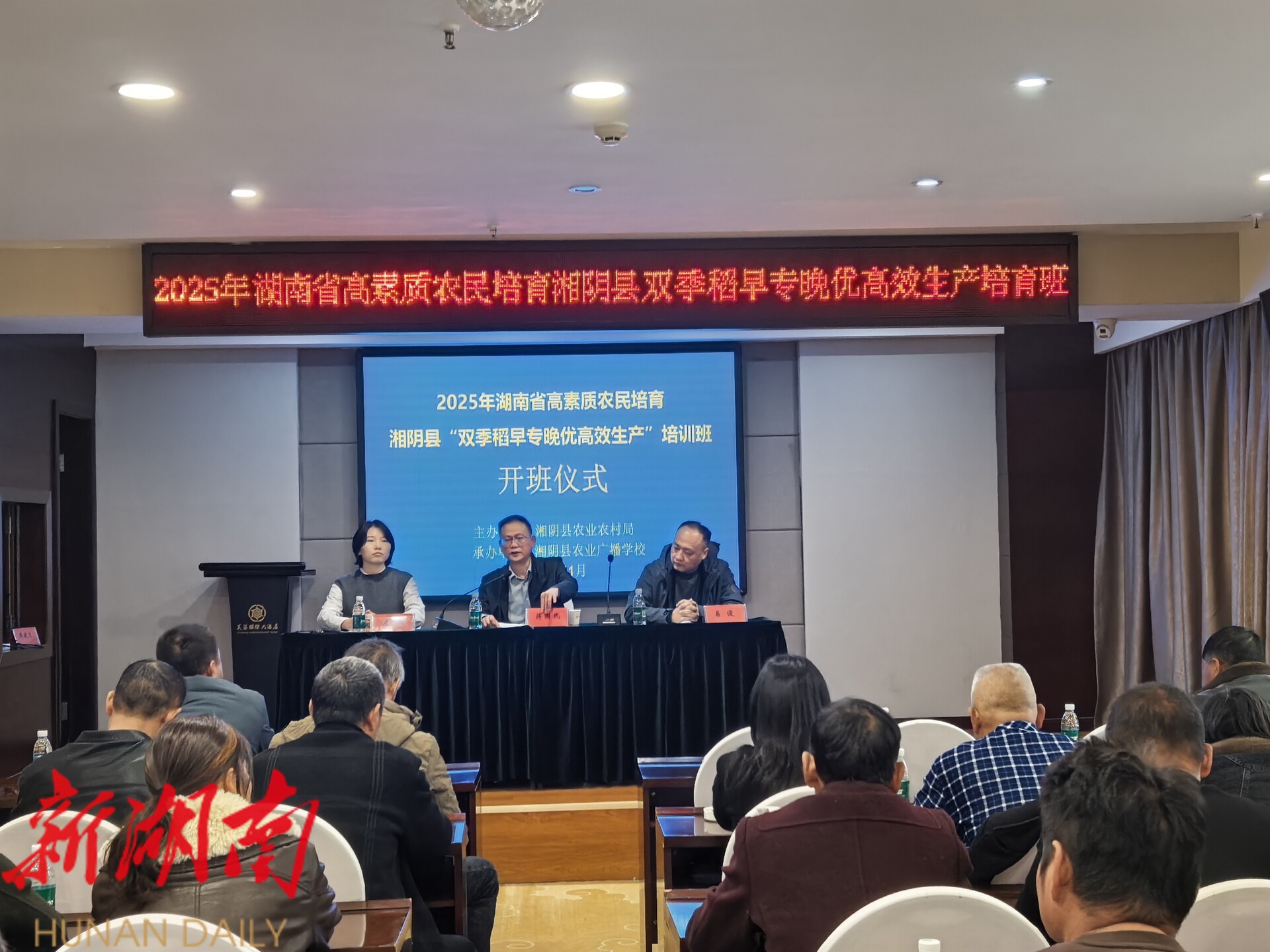 湖南日报·新湖南客户端11月24日讯(通讯员 徐晚晴 余玲)为全面提升粮食供给保障能力,推动水稻产业向高质量发展迈进,11月24日,2025年湖南省高素质农民培育湘阴县双季稻“早专晚优”高效生产培育班正式启动。来自全县的50名种植大户、家庭农场骨干、返乡创业青年等农业从业者参加培训。