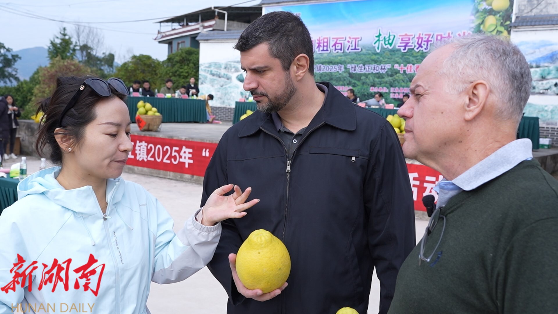 巴西客商爱德华多·安德拉德·洛佩斯兴奋地说:“初到中国就尝到江永香柚,比惯喝的橙汁更清爽!甜中带鲜,连肠胃都‘开心’,太惊艳了!”