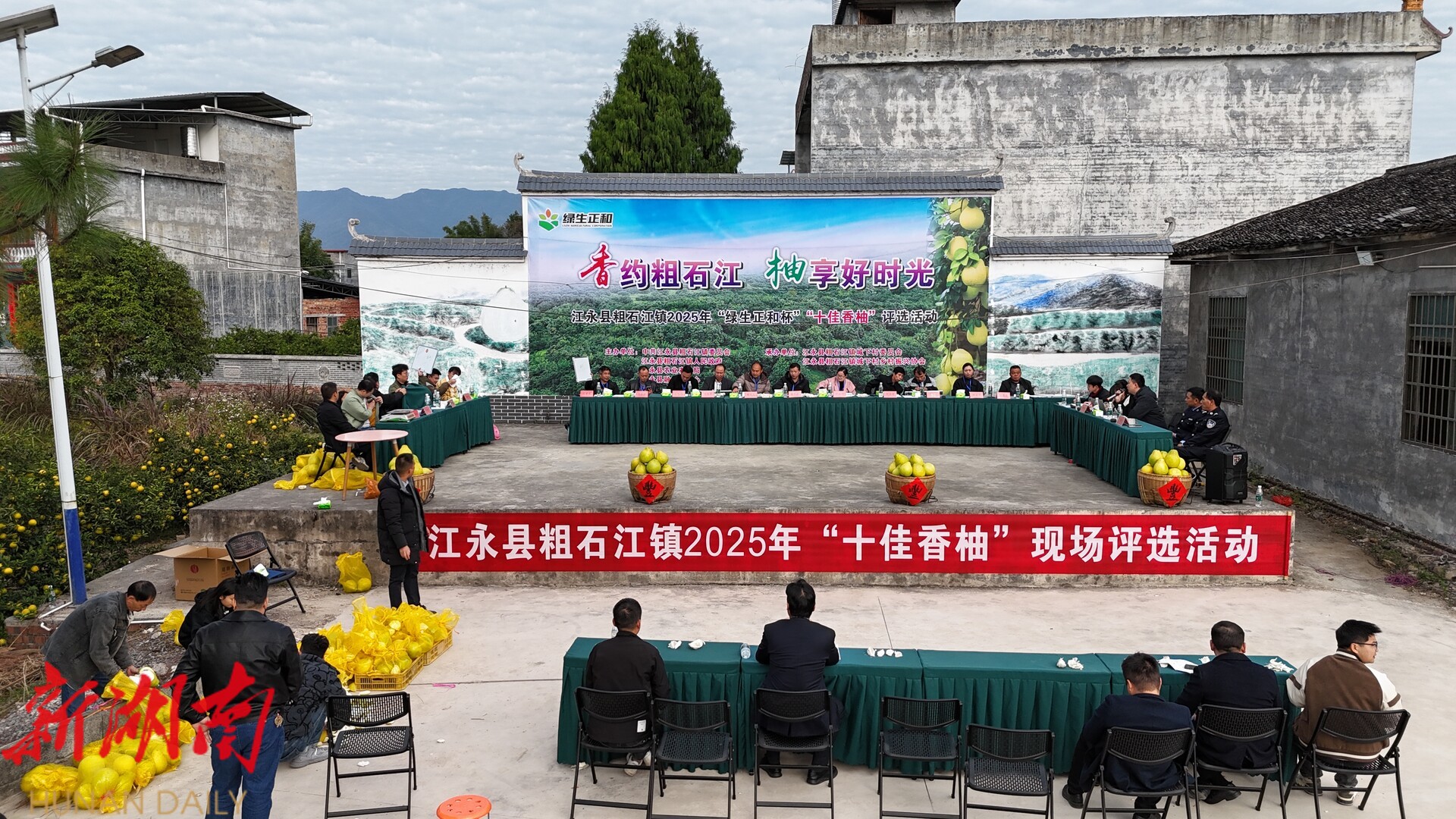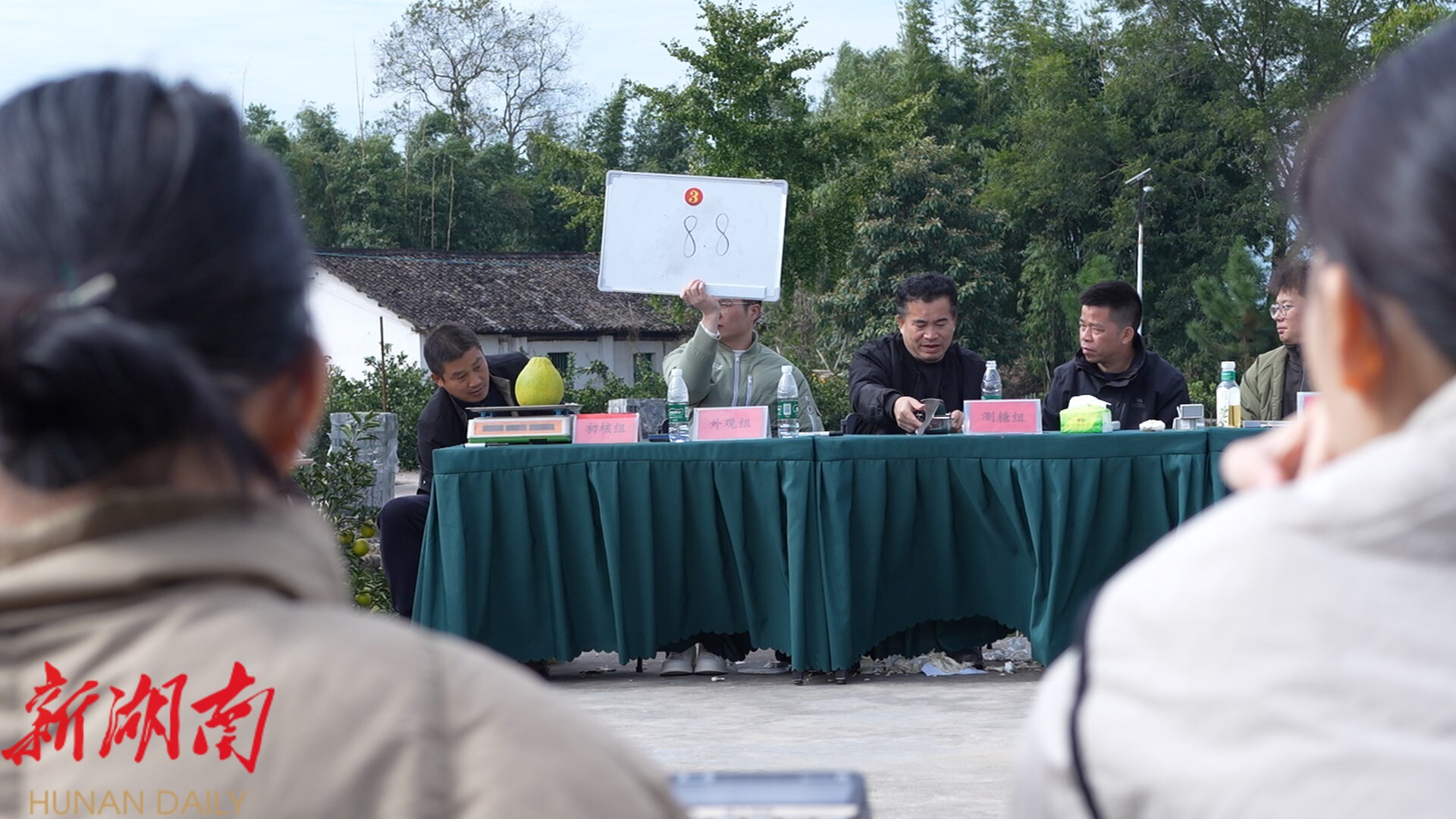 江永融媒11月24日讯(记者 毛文涛 朱俊) 11月21日,江永县粗石江镇在城下村举行“十佳香柚”评选活动,吸引了近60户果农参加。