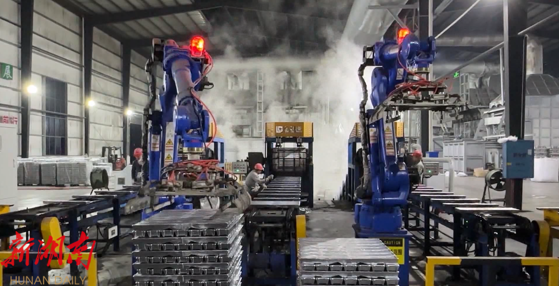 在江永县产业园区的永州市中新铝业有限公司生产车间内,一条条自动化生产线正满负荷运转。铝液经过打渣、冷却、码垛等工序,变成一块块光亮的铝锭,等待发往全国各地。