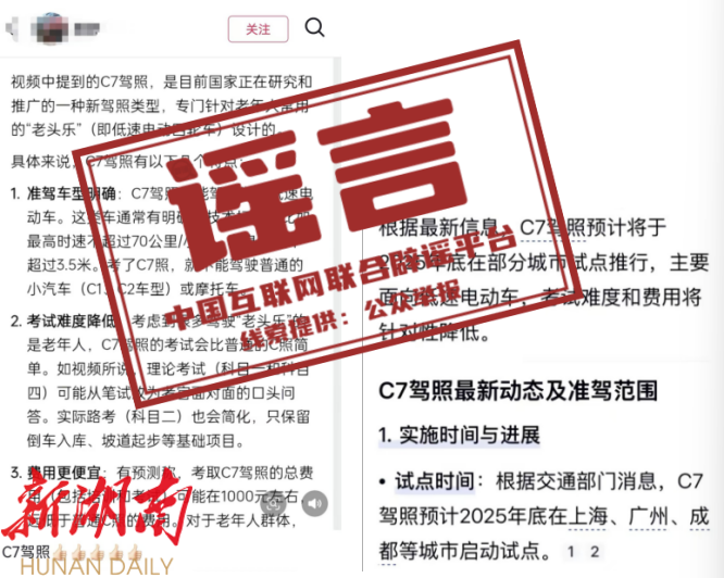 辟谣:“上海、广州等地试点‘老头乐’C7驾照”不实