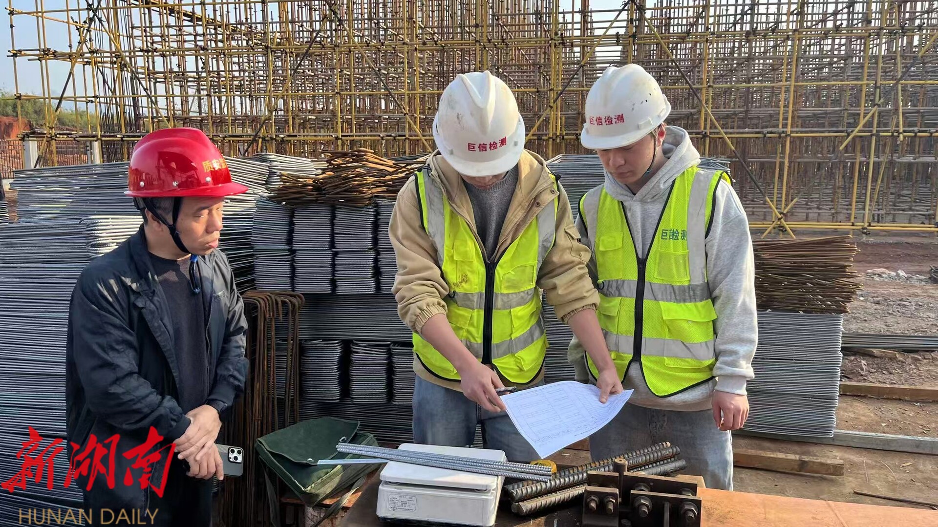 排查过程中,检测人员对桂城韵府、工业园久玖新材料、龙潭街道石碗水村民自建房项目、桂阳燕山建材有限公司的钢筋、混凝土等建筑材料进行了随机抽取,现场使用卡尺等工具对钢筋的直径进行了初步测量,重点核查钢筋规格型号是否符合设计要求、实际使用钢筋直径与图纸标注是否一致、钢筋间距和数量是否达标等问题。