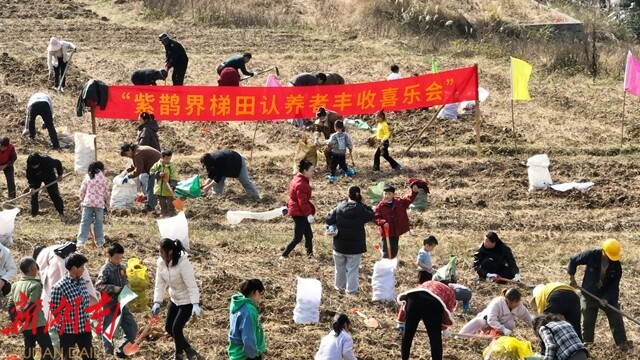 湖南日报·新湖南客户端11月25日讯(通讯员 罗辉 吴繄倪)11月23日,以“认养一垄田 收获满心甜”为主题的2025年紫鹊界梯田觅薯活动开幕,通过农耕体验串起城乡情感纽带,为乡村振兴注入新动能。