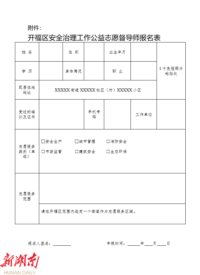 点此下载报名表: 开福区安全治理工作公益志愿督导师报名表.docx