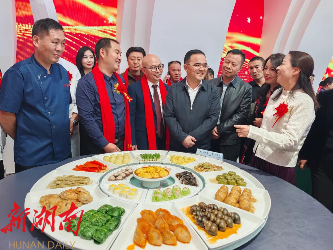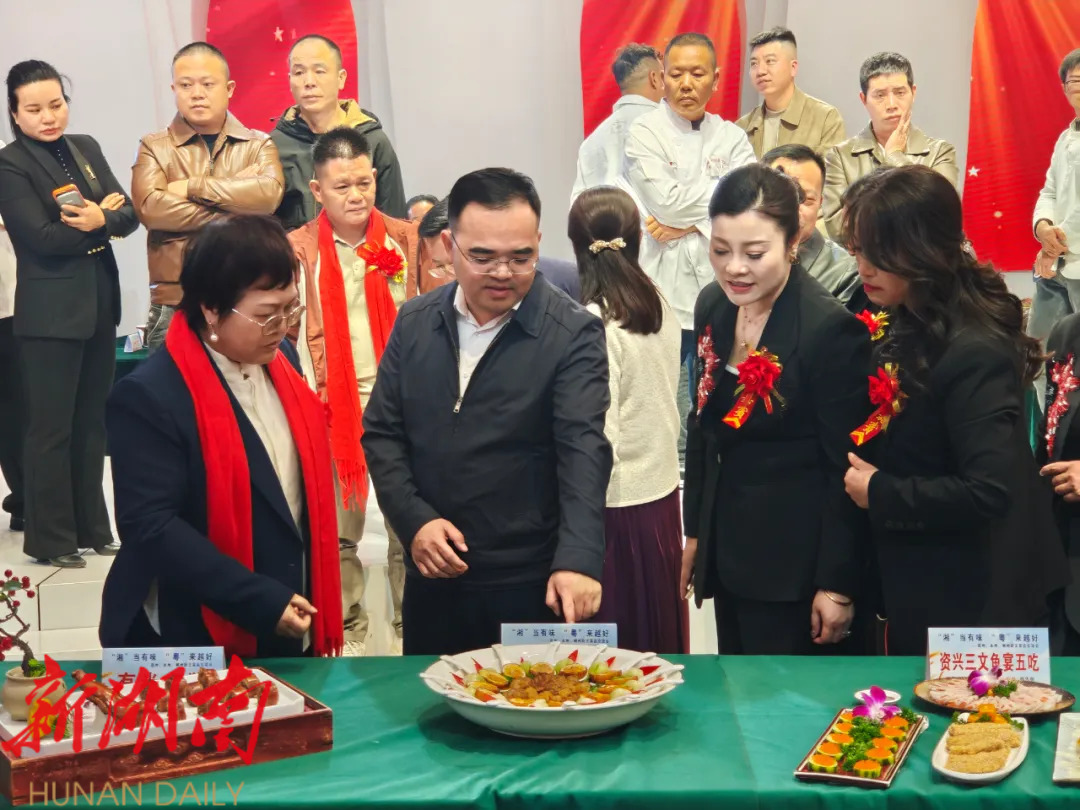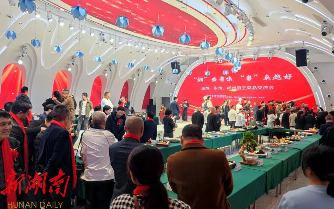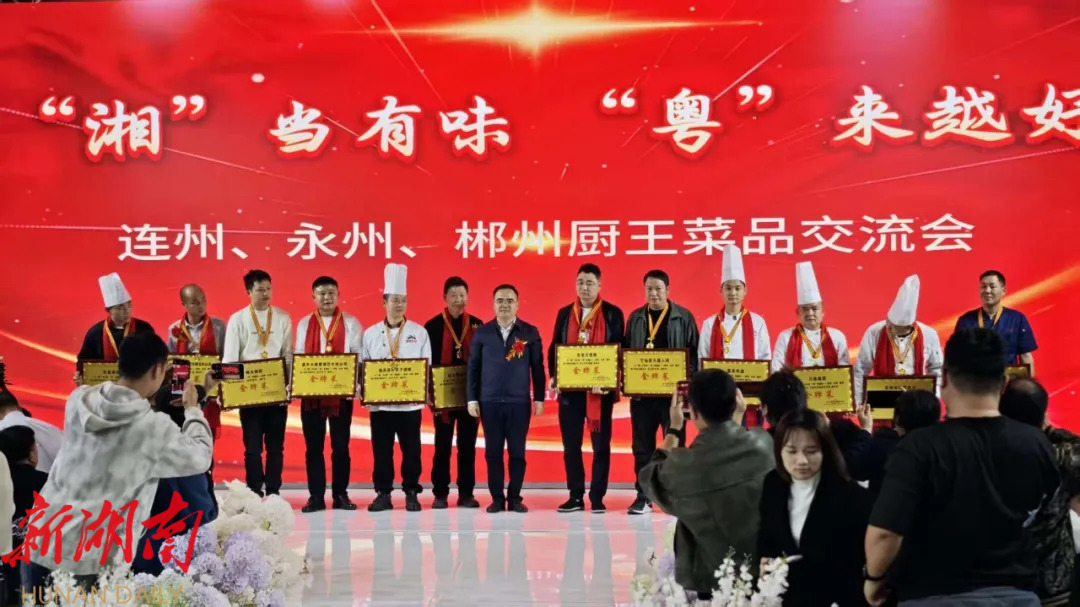 下午5时,活动正式启幕。现场荟萃了近80道由三地厨王精心烹制的特色佳肴,既有嘉禾子姜血鸭、永州东安鸡、连州腊味等传承经典,更不乏融合湘粤两地烹饪精髓的创新力作。一道道香气四溢的菜品,不仅展现了三地深厚的美食文化底蕴,更彰显了餐饮人对“鲜、技、味”的不懈追求,引得现场赞叹连连。