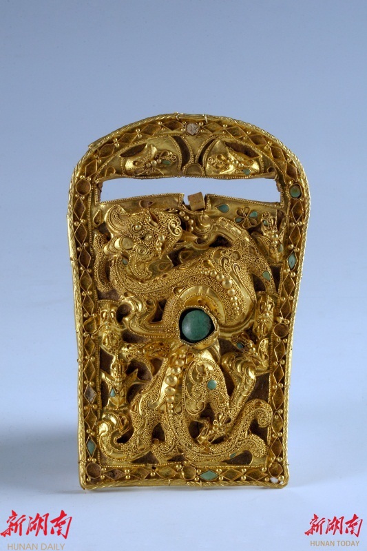嵌绿松石螭龙纹金带扣。湖南省博物馆供图