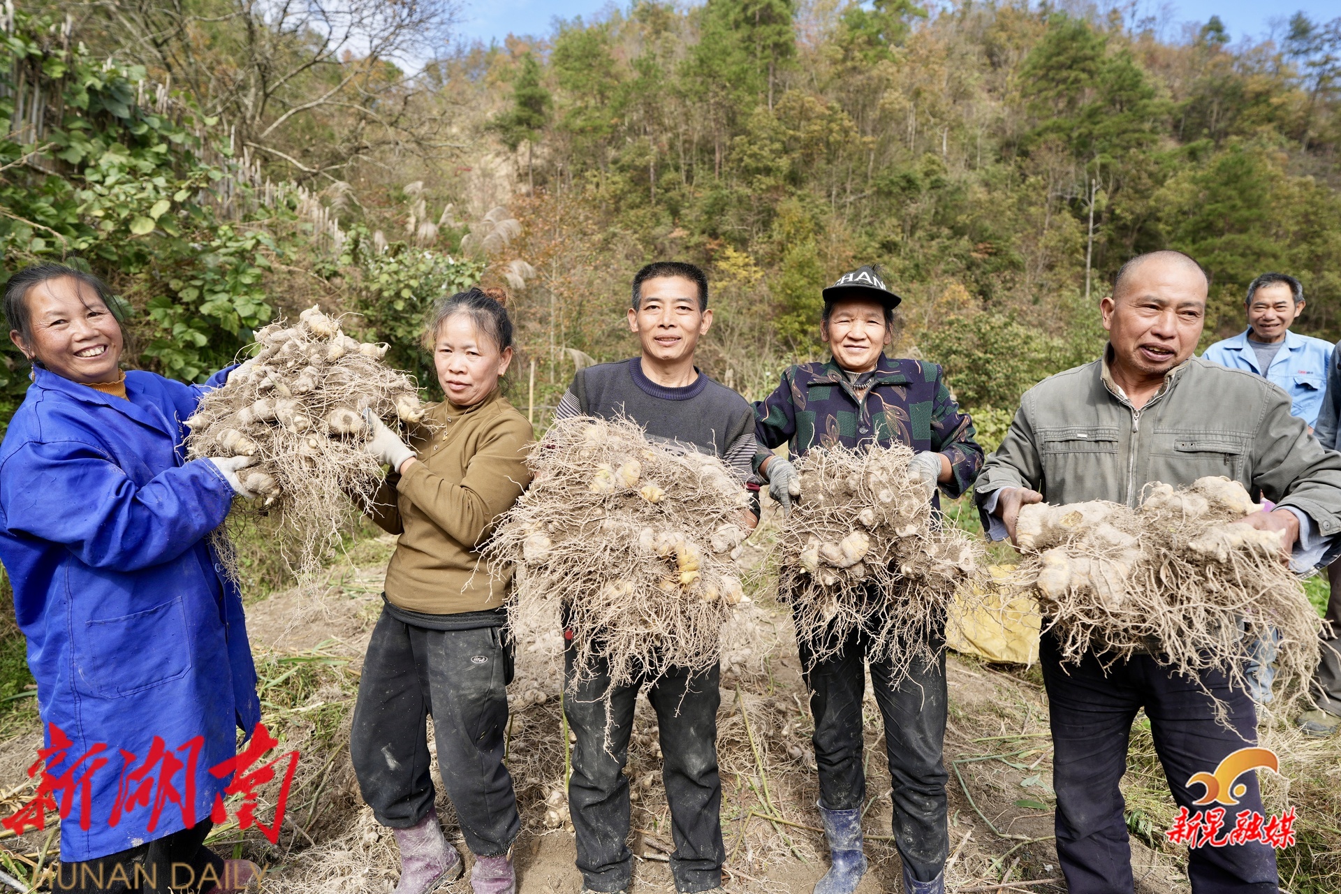 新晃融媒11月26日讯(记者:舒昊)深秋时节,硕果盈枝。我县扶罗镇圭界村的黄精种植基地迎来了丰收季,田间地头处处洋溢着收获的喜悦。村民们忙着采挖、分拣、装运,一筐筐刚出土的黄精根茎肥大、色泽金黄,成为当地群众增收致富的“土黄金”。
